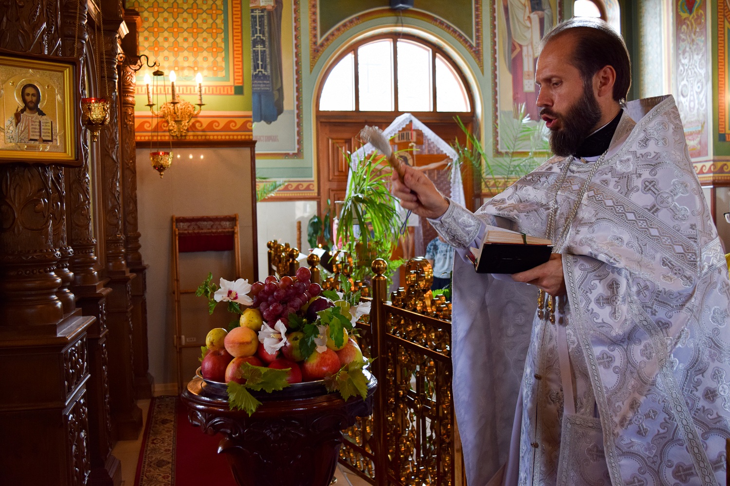 В честь этого двунадесятого праздника в нашем храме была совершена Святая Божественная литургия, за которой многие прихожане причастились Святых Христовых Тайн. Также в этот день освящались древесные плоды нового урожая. Настоятель храма протоиерей Андрей Карпец совершил водосвятный молебен и освятил все принесенные плоды.