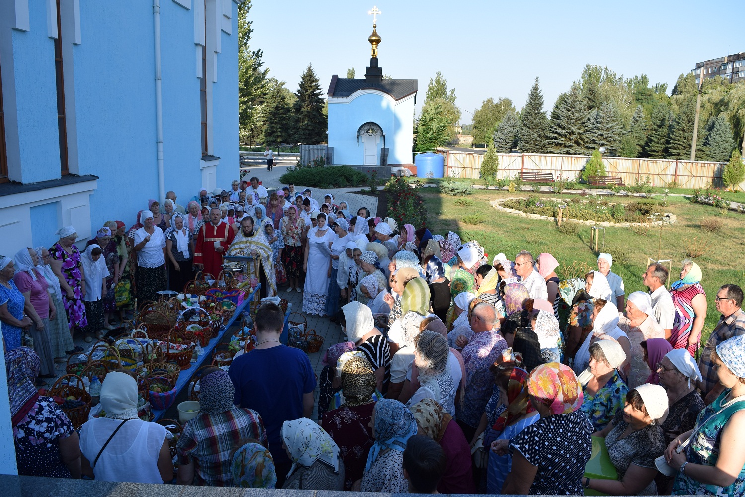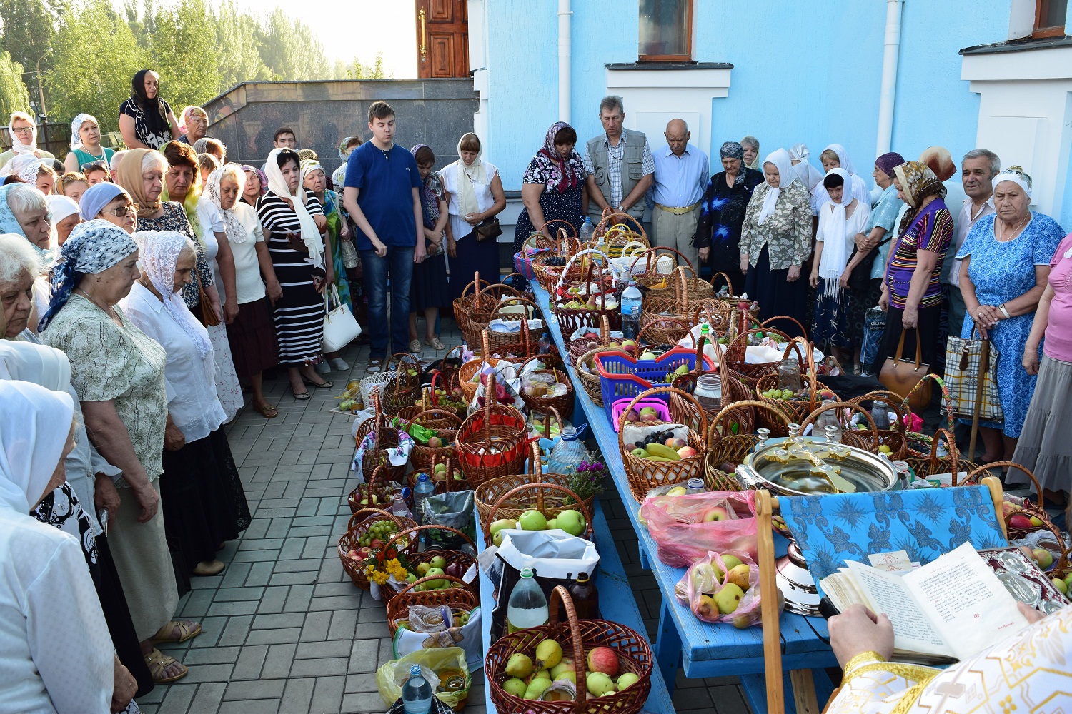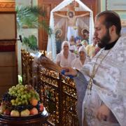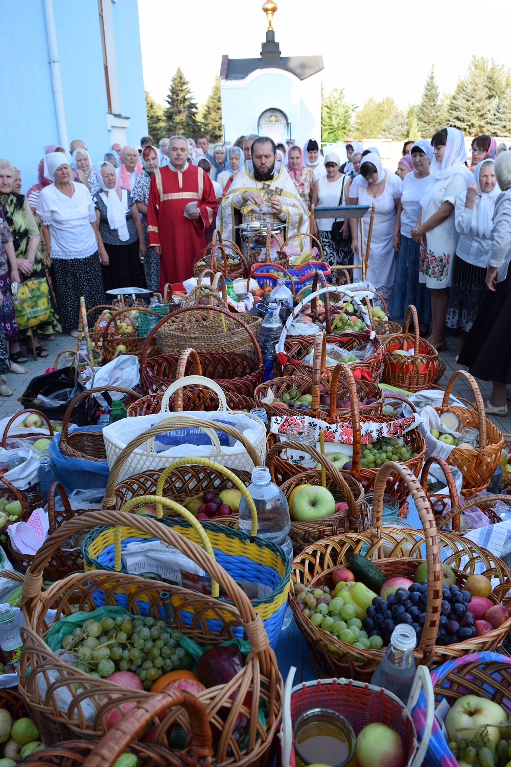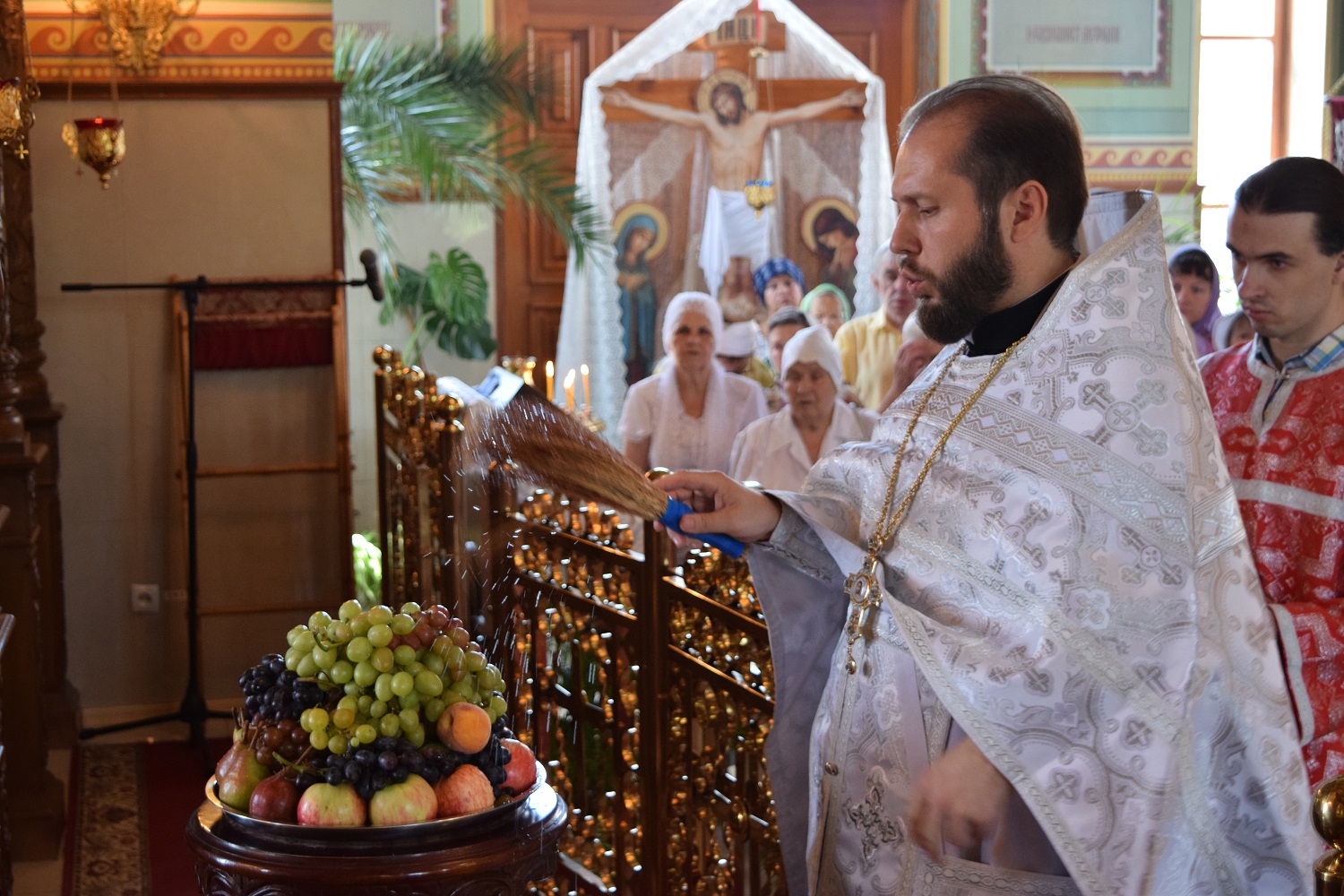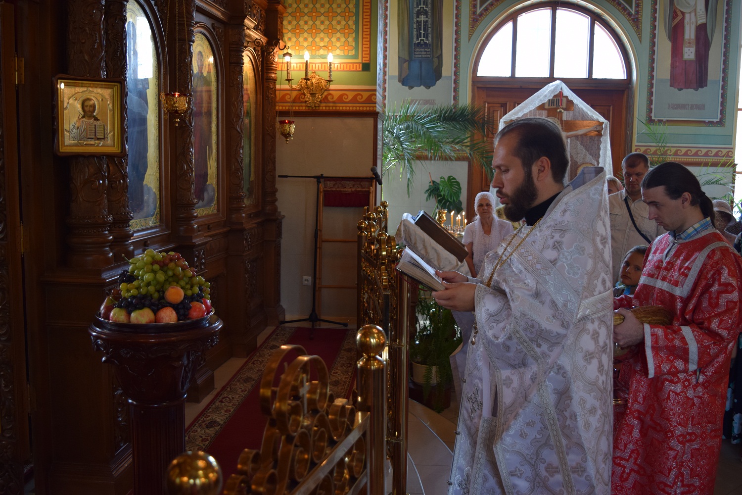 В этот день освящается новый урожай- яблоки, виноград и другие древесные плоды. Этот обычай- священный и знаменательный. Первые плоды нового урожая приносили к алтарю и в Ветхом Завете, по Закону Моисееву. В нашем храме также состоялся молебен с освящением плодов, после чего была совершена Святая Божественная Литургия. Многие прихожане причастились Святых Пречистых Таин Господа нашего Иисуса Христа. После Литургии освящение плодов вновь прибывших людей было продолжено.