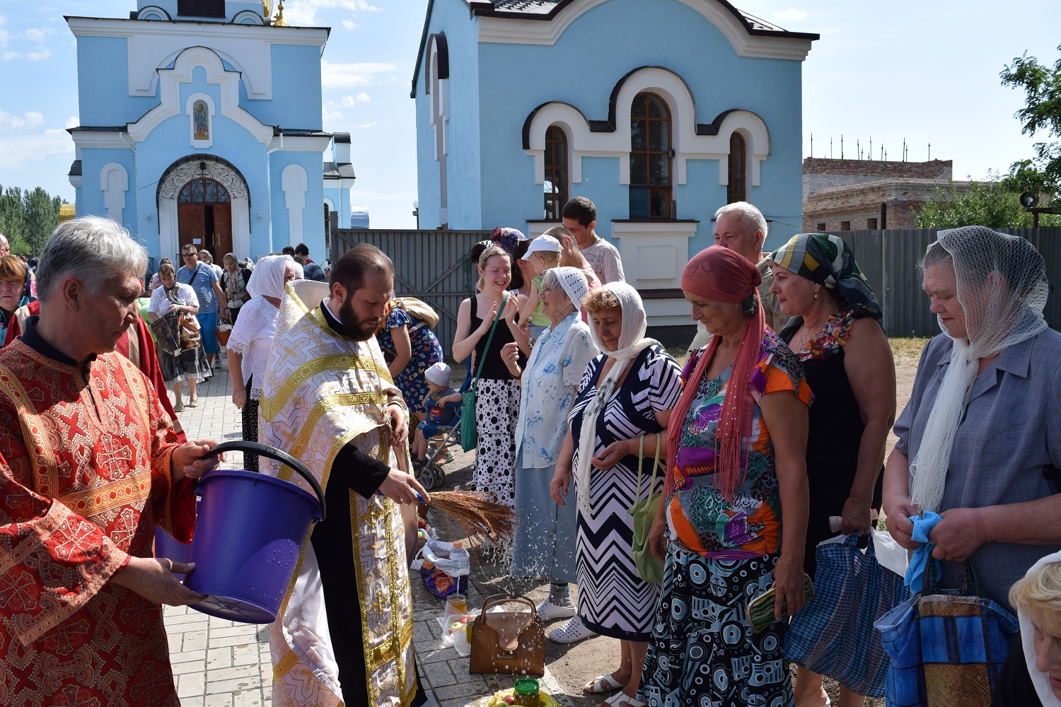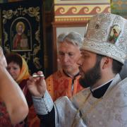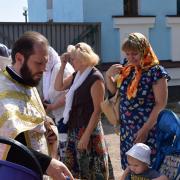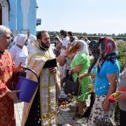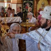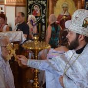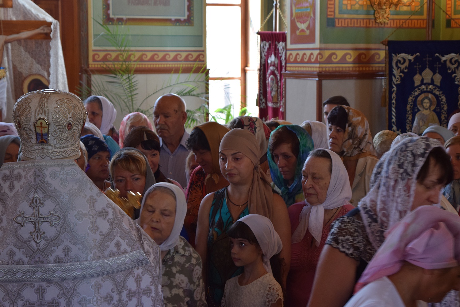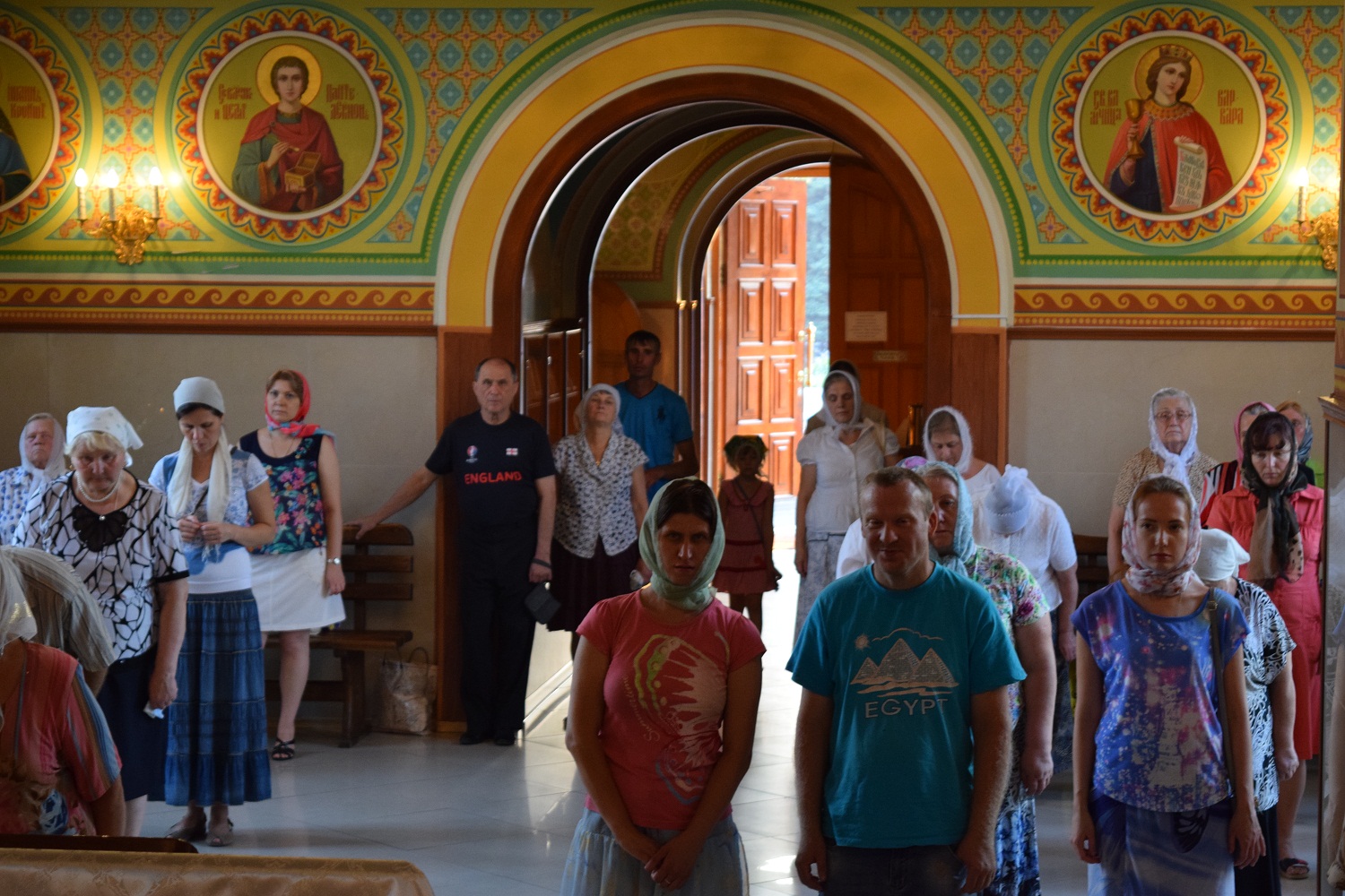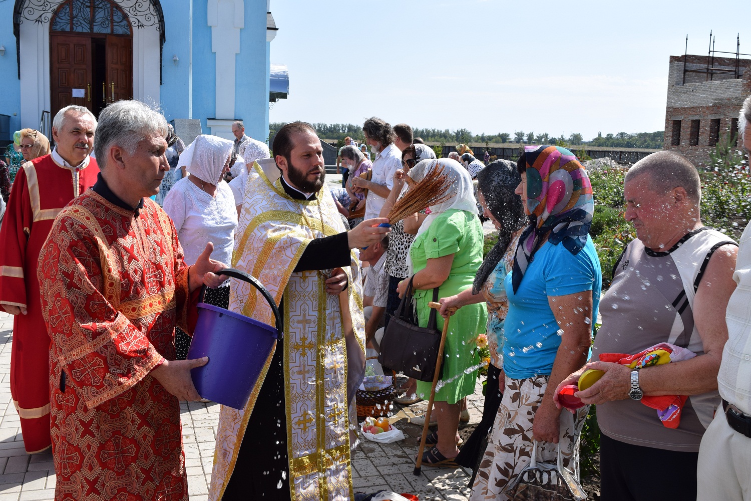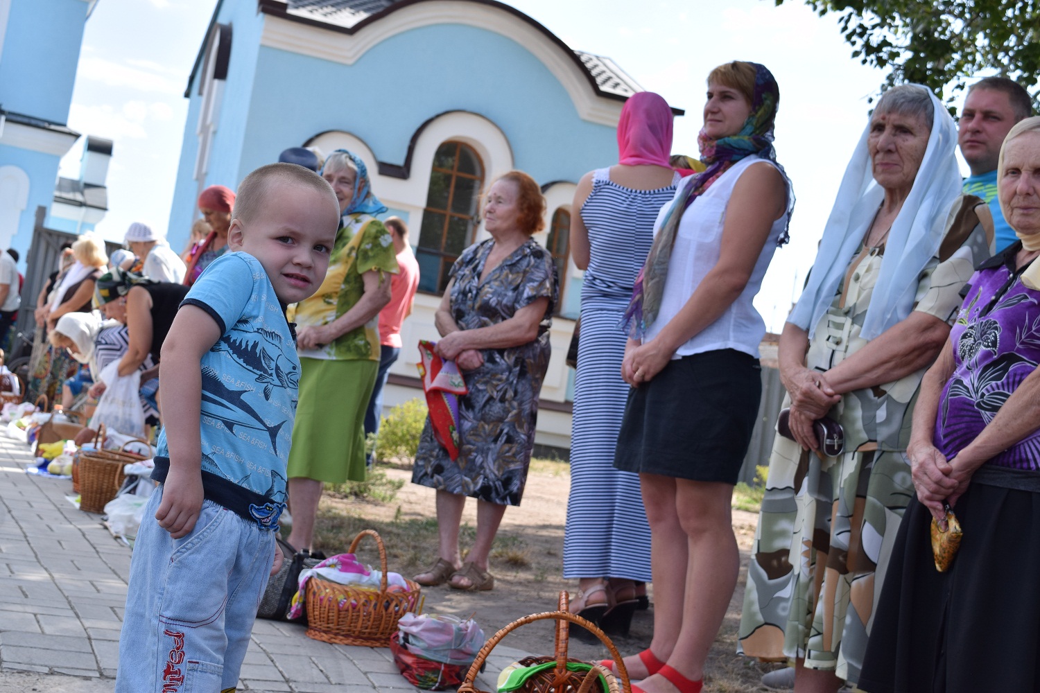 В этот день освящается новый урожай- яблоки, виноград и другие древесные плоды. Этот обычай- священный и знаменательный. Первые плоды нового урожая приносили к алтарю и в Ветхом Завете, по Закону Моисееву. В нашем храме также состоялся молебен с освящением плодов, после чего была совершена Святая Божественная Литургия. Многие прихожане причастились Святых Пречистых Таин Господа нашего Иисуса Христа. После Литургии освящение плодов вновь прибывших людей было продолжено.