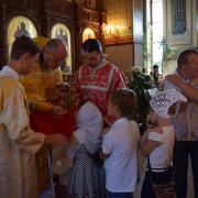 За Божественной Литургией многие прихожане исповедались и причастились Святых Христовых Тайн. По окончании богослужения состоялся торжественный Крестный ход вокруг храма, после которого настоятель храма, протоиерей Андрей Карпец, поздравил всех с праздником и поблагодарил за молитвы.