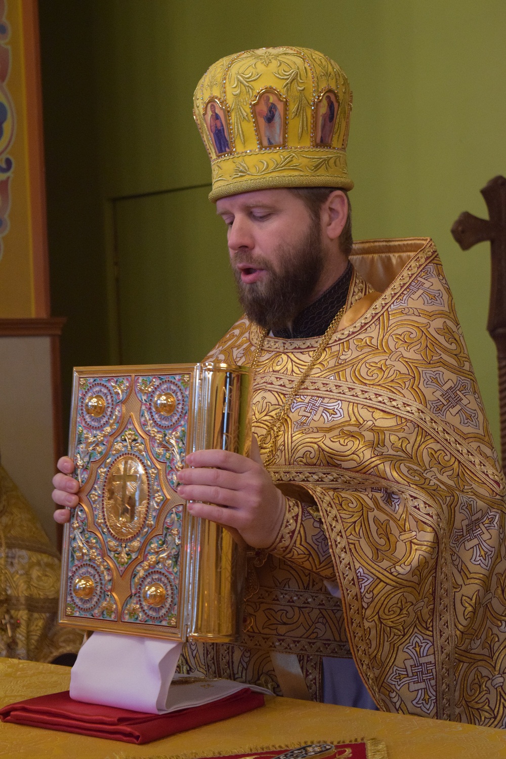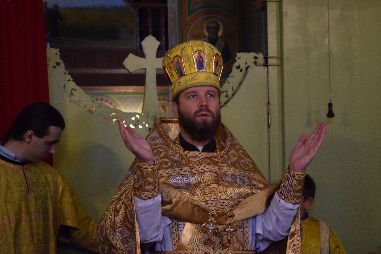 Подобно своему Небесному покровителю, батюшка ведет свою паству за собой, ко Христу.