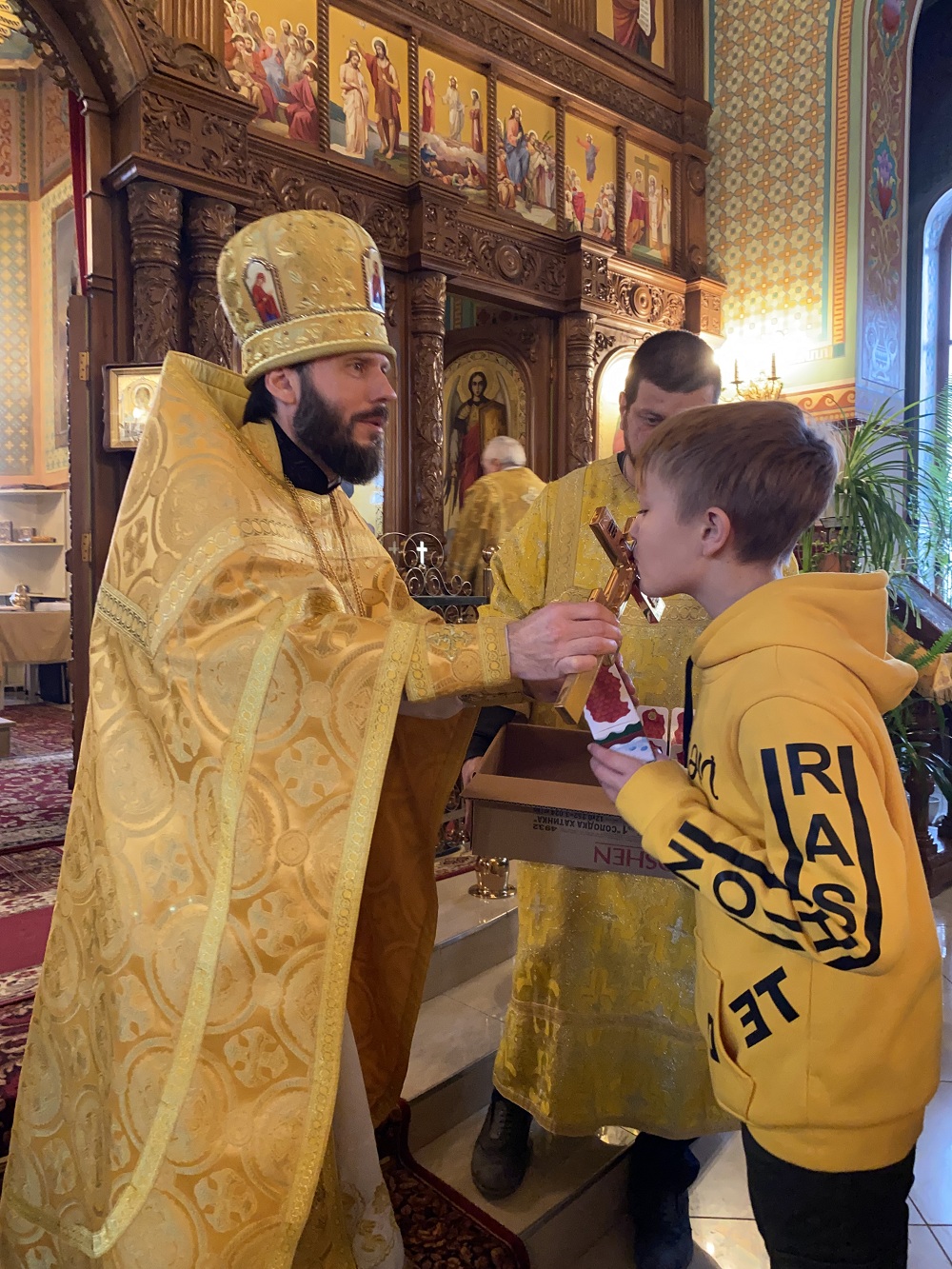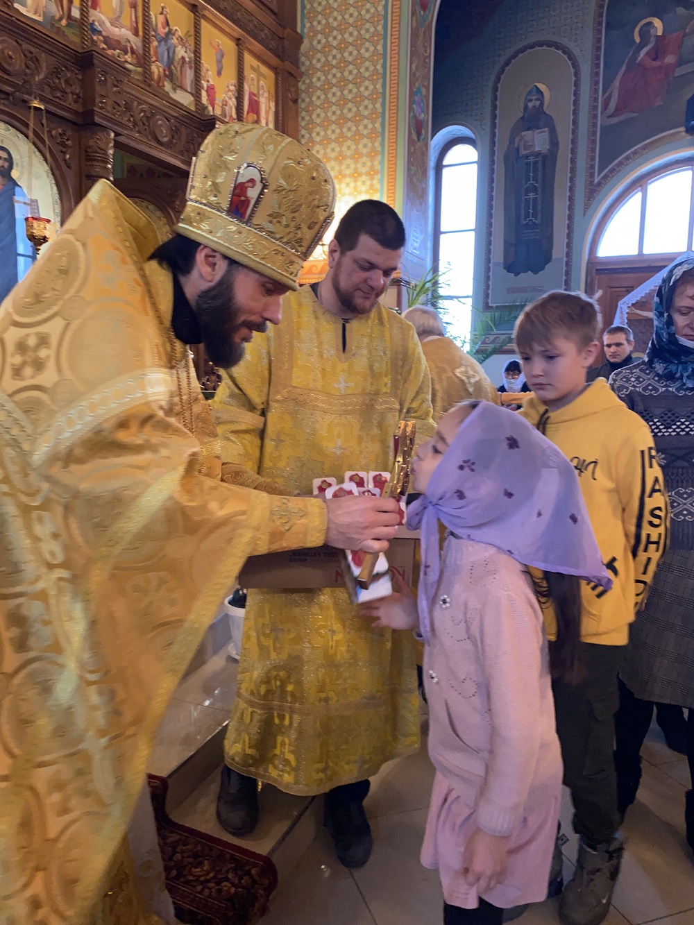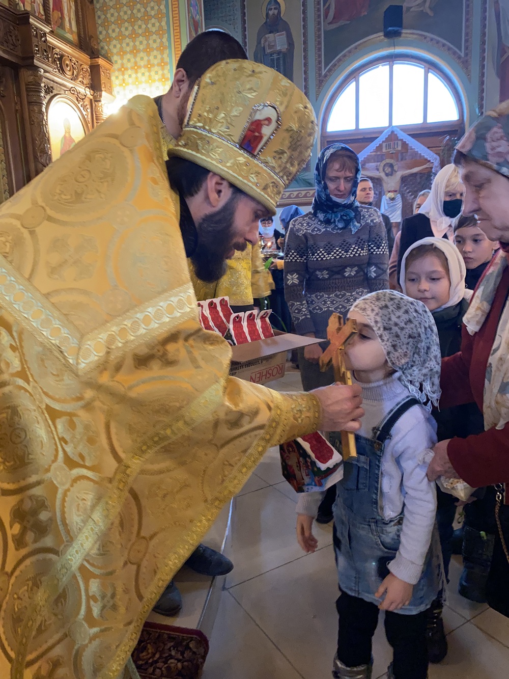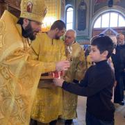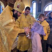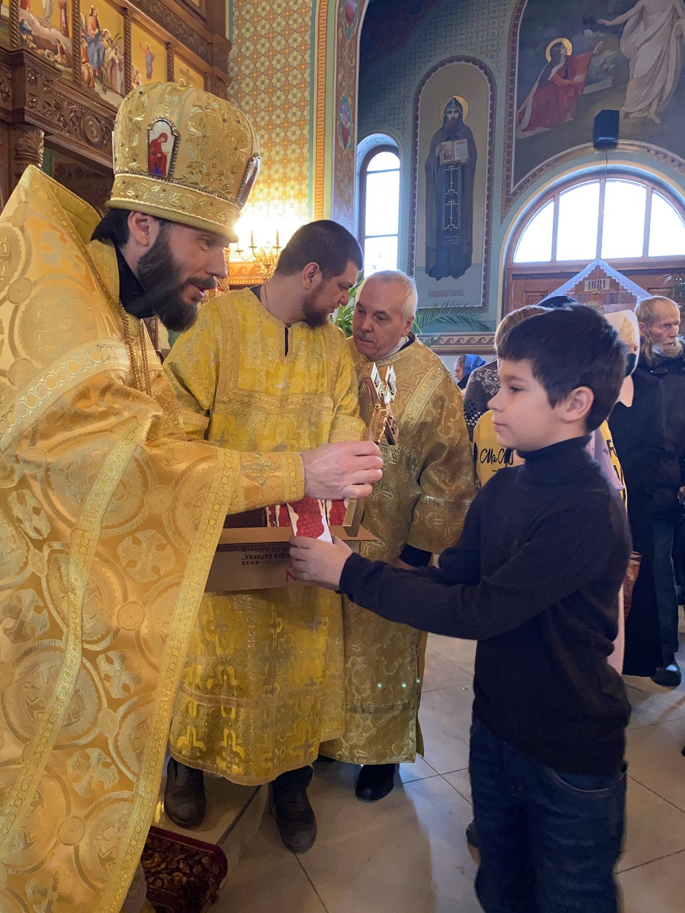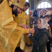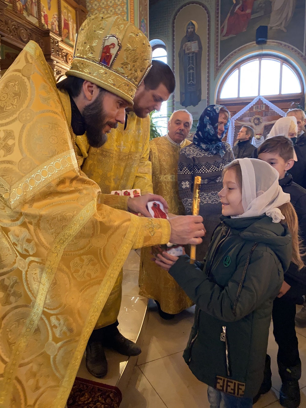 По окончании богослужения отец Андрей поздравил всех с праздником и традиционно подарил сладкие подарки всем детям.