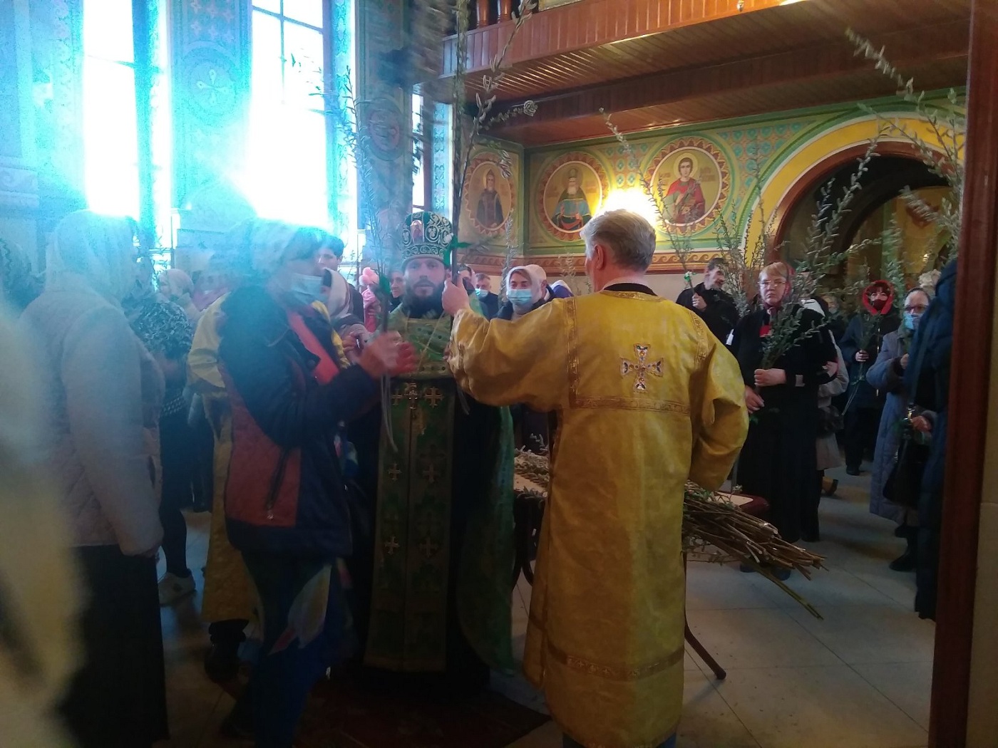 В нашем храме сегодня также собралось много прихожан, чтобы воздать хвалу Своему Спасителю. Держа в руках веточки вербы, люди прославляли, благодарили Господа и просили у Него дарования всем нам Его великой милости. А впереди Страстная Седмица, во время которой православные христиане будут вспоминать о последних днях земной жизни Иисуса Христа, о предательстве Его ближайшего ученика - апостола Иуды, об издевательствах и насмешках над Ним, о Его мучительных страданиях и крестной смерти.