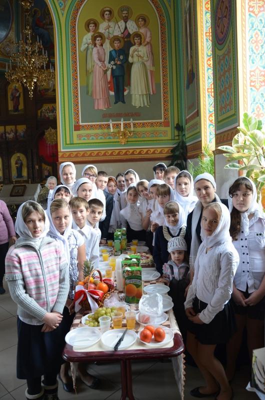 Все прихожане храма, певчие детского и взрослого хоров искренне, от всего сердца поздравляли отца Андрея с праздником. Духовные чада выразили батюшке свою безмерную любовь и признательность, благодарность за то, что, подобно своему Небесному покровителю Андрею Первозванному, он ведет свою паству за собой, ко Христу. Также все благодарили Господа Бога за то, что Он даровал такого настоятеля храма, которого все очень любят, за то, что каждый человек, приходящий к отцу Андрею, старается брать с него пример. Дорогому батюшке пожелали крепкого здоровья и долгоденствия, духовной радости, крепости духовных и телесных сил, мира, любви и Божьей Милости на многая и благая лета.