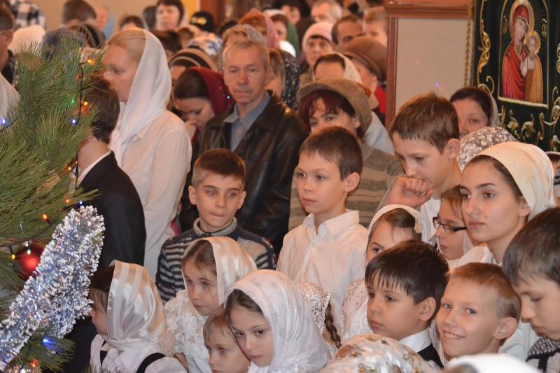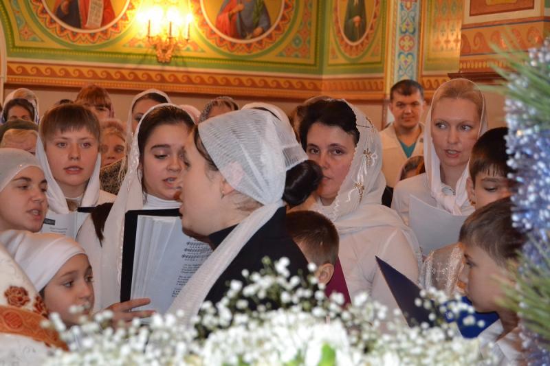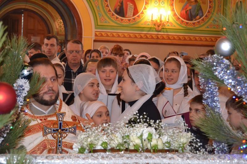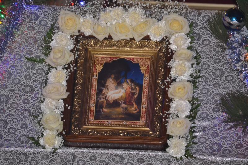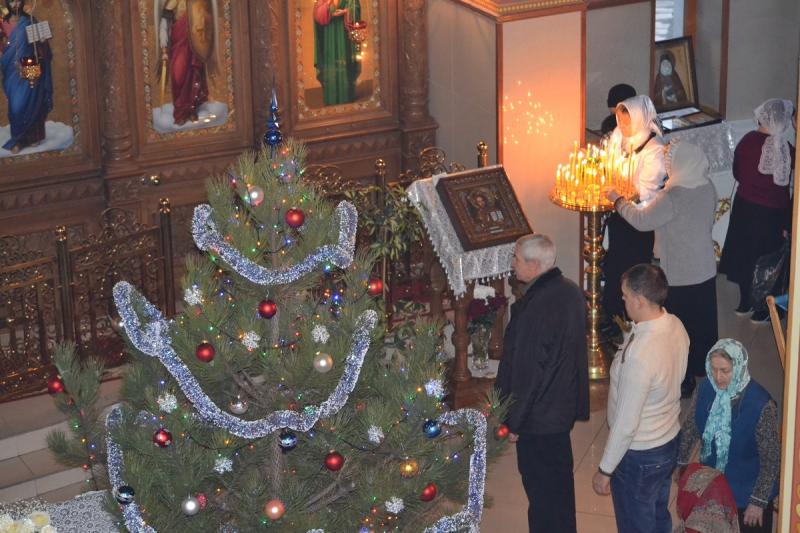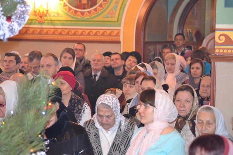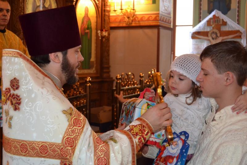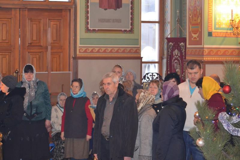 Настоятель храма протоиерей Андрей Карпец поздравил прихожан с этим светлым и радостным праздником. Он пожелал своей пастве крепкого здоровья, терпения, милости Божьей во всех делах. В своей проповеди батюшка обратился к людям с тем, что Господь наш Иисус Христос пришел на землю, чтобы спасти человечество от духовной смерти, и люди должны стараться исполнять Его волю, жить благочестиво, мирно, соблюдать Заповеди Божьи, всегда имея в своих сердцах Новорожденного Спасителя. Также отец Андрей ознакомил прихожан с Рождественским посланием Святейшего Патриарха Московского и всея Руси Кирилла. Всем детям батюшка раздал сладкие подарки.