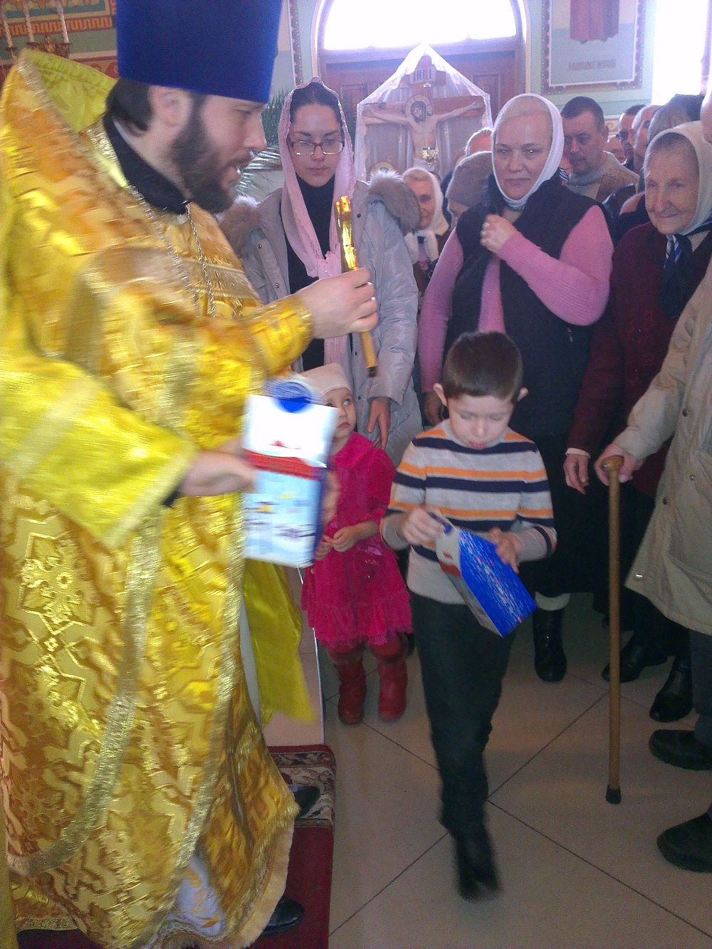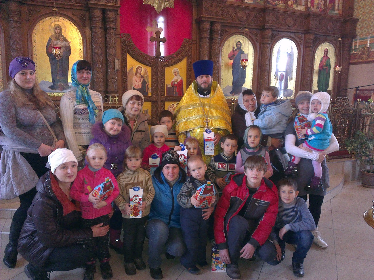 По окончании Божественной литургии настоятель храма протоиерей Андрей Карпец раздал подарки всем детям, которые пришли в храм, чтобы помолиться Святому Николаю. Наравне со взрослыми дети просили Угодника Божия о мире, о том, чтобы их мамы и папы были живы и здоровы, чтобы они улыбались и были счастливыми. Просили Чудотворца о том, чтобы он совершил и для них чудо – умолил Христа Бога нашего о мире в нашем городе и во всех других городах. Просили о том, чтобы они ложились спать и просыпались без страха, ходили в детские сады и школы, гуляли на улице в любимом дворе, как раньше, радостно и беззаботно.