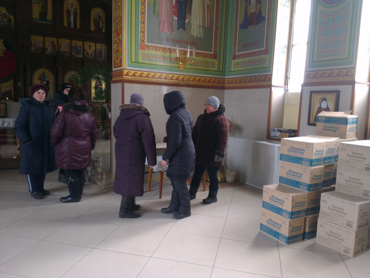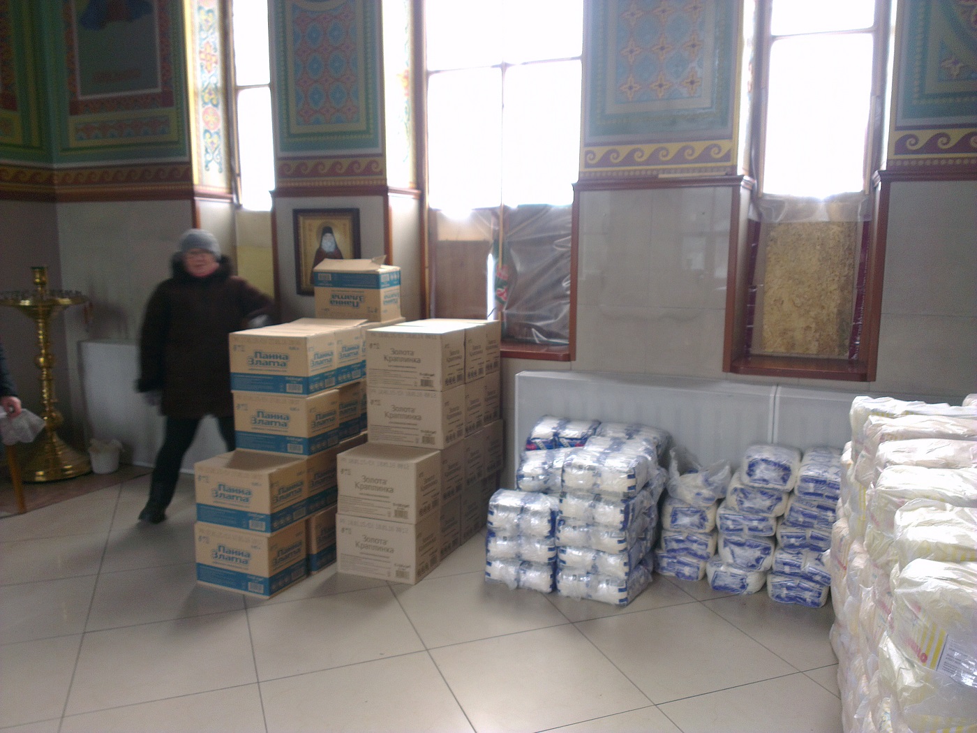 Так, сегодня в храм святой равноапостольной Марии Магдалины поступила гуманитарная помощь для жителей Авдеевки от архиепископа Изюмского и Купянского Елисея. Много людей получили наборы, в которые входят мука, сахар, соль, крупы, макаронные изделия, растительное масло, мыло, свечи, спички, хлеб.