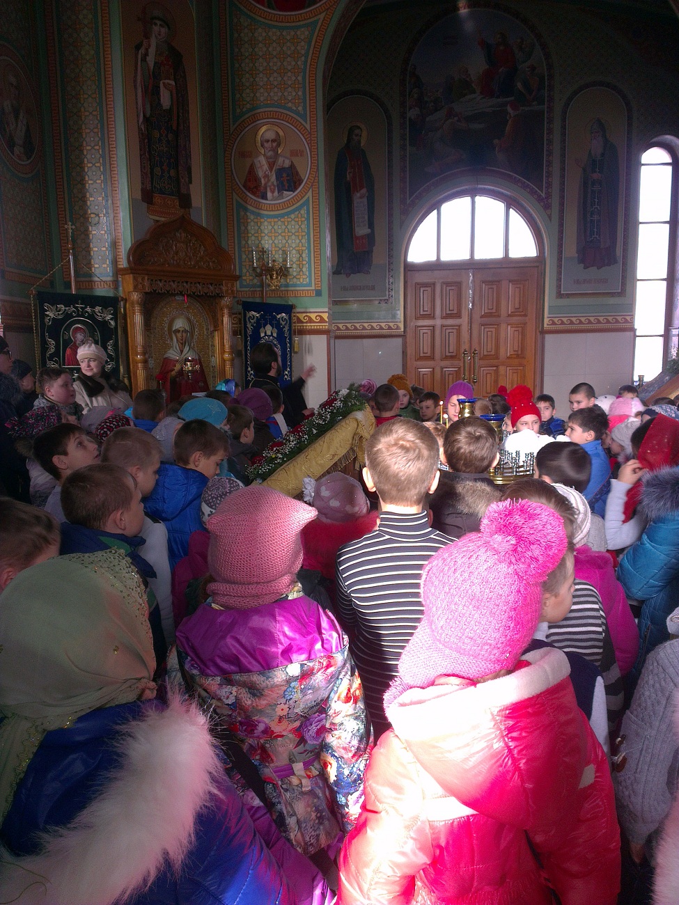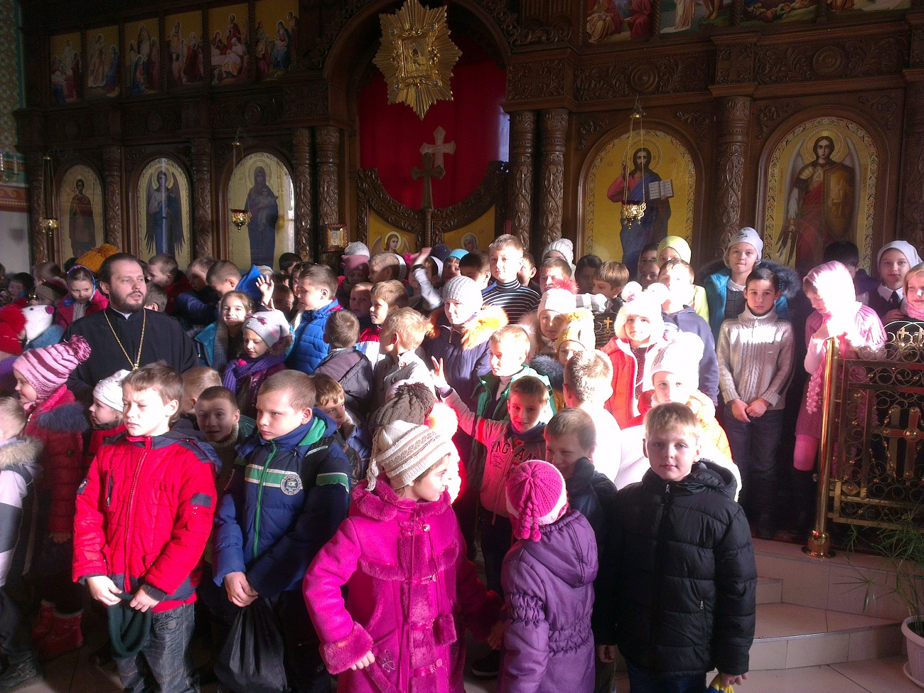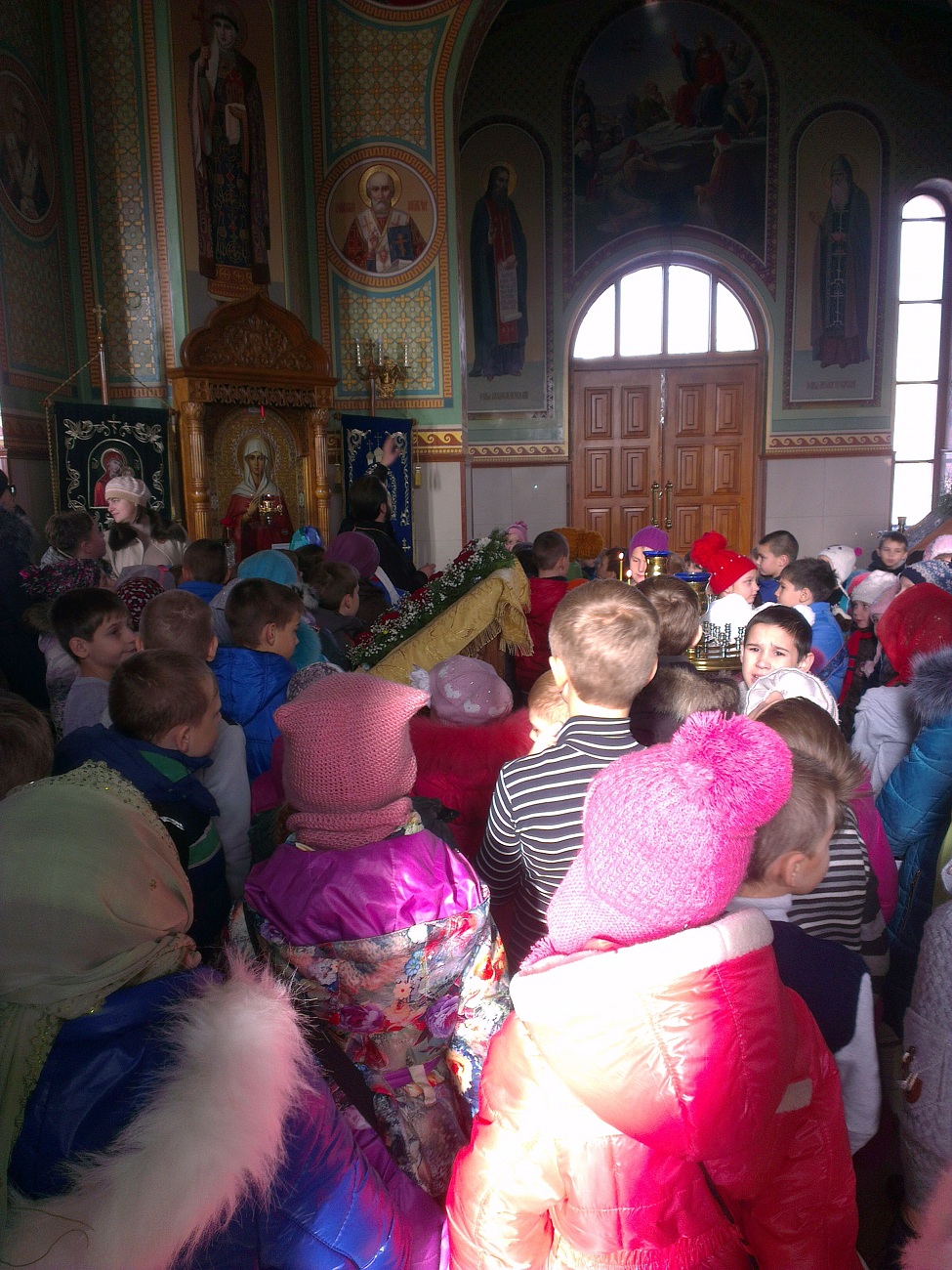 В преддверии одного из любимых и почитаемых праздников – дня святителя Николая Чудотворца – наш храм посетили дети. 110 учащихся 1-4 классов Авдеевской общеобразовательной школы № 6 вместе со своими учителями и директором Шляховой Викторией Васильевной пришли в храм для того, чтобы побольше узнать об этом святом.