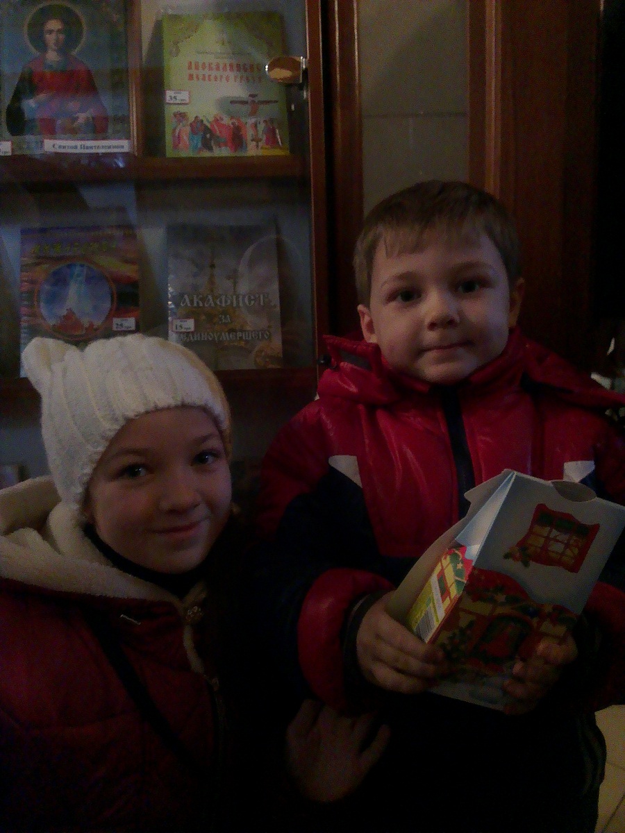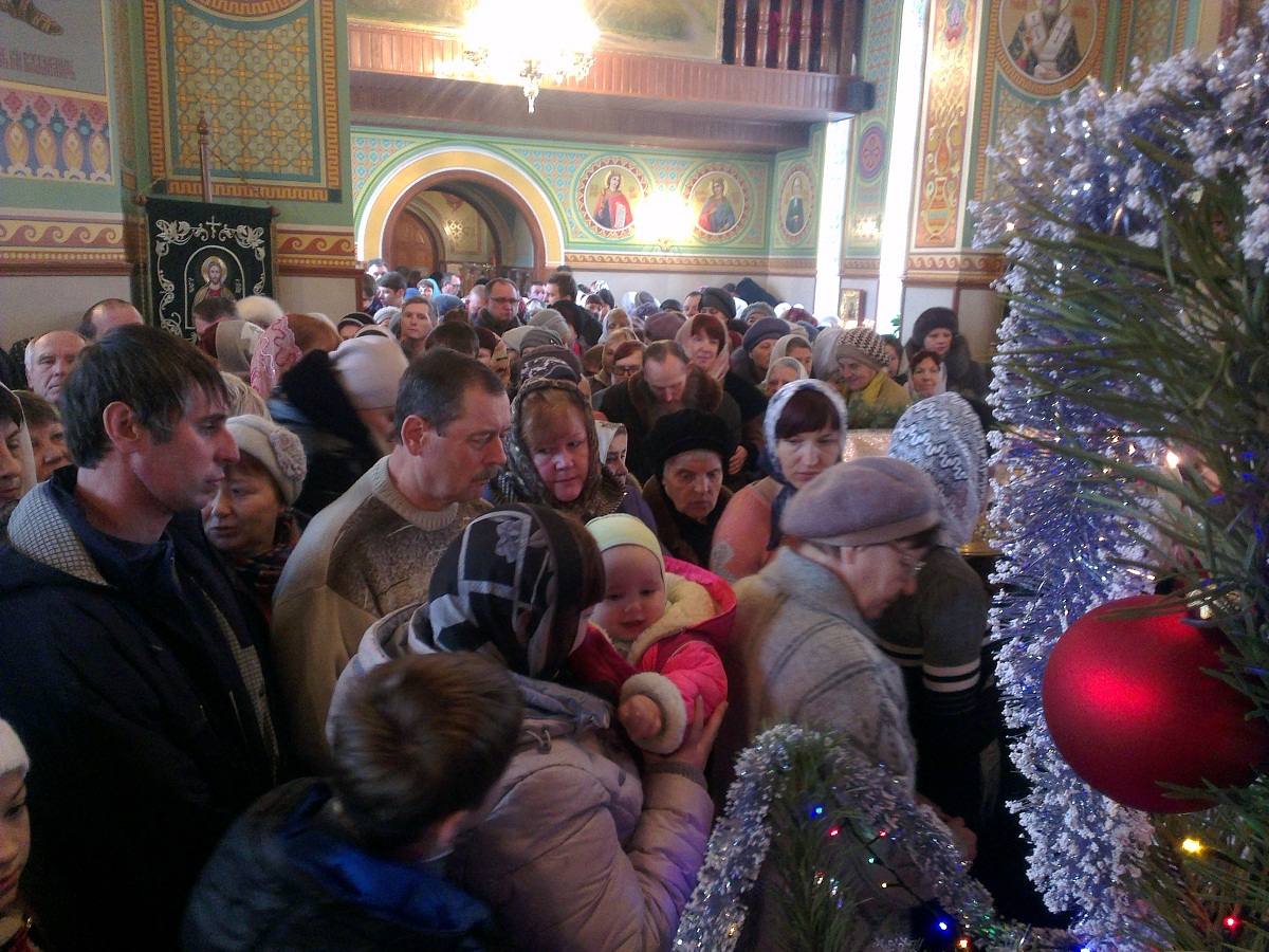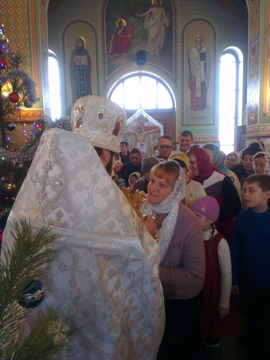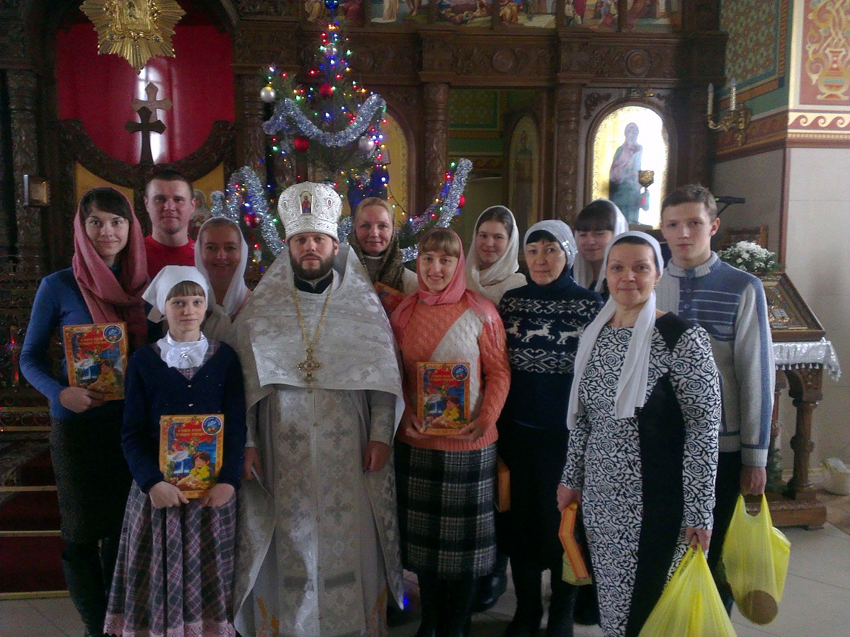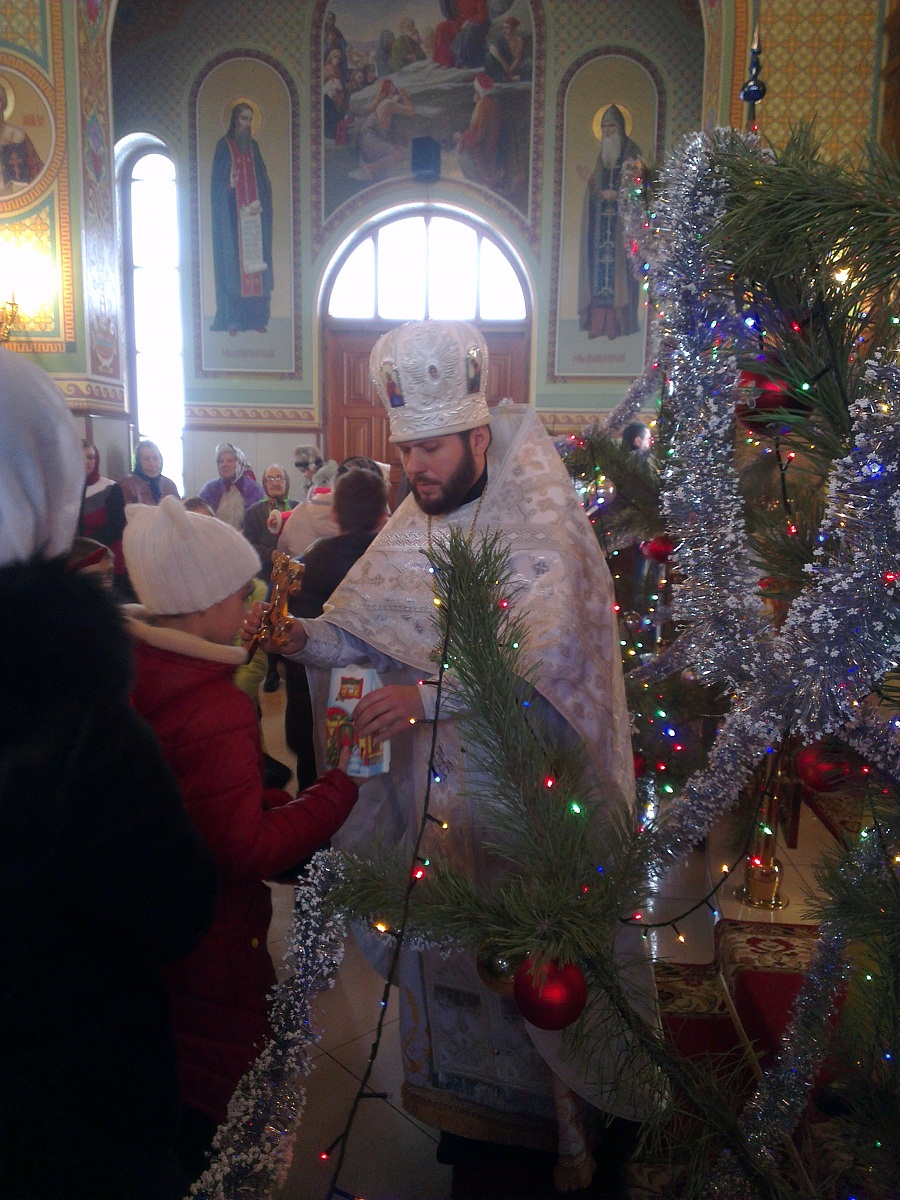На Божественную Литургию в наш храм пришло множество людей, чтобы прославить Господа, поклониться Новорожденному Богомладенцу, причаститься Святых Христовых Тайн. Настоятель храма протоиерей Андрей Карпец поздравил всех прихожан с великим и радостным праздником. По окончании Божественной Литургии батюшка поблагодарил всех за совместную молитву и раздал прихожанам сладкие подарки.