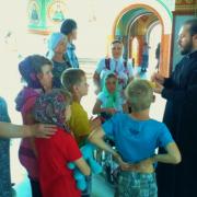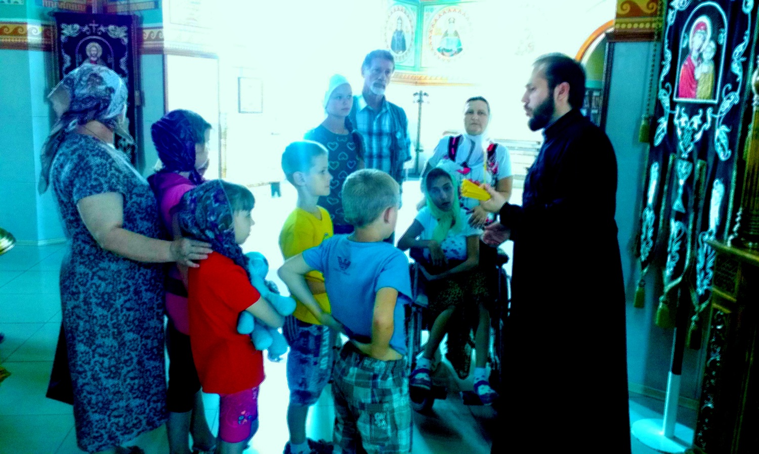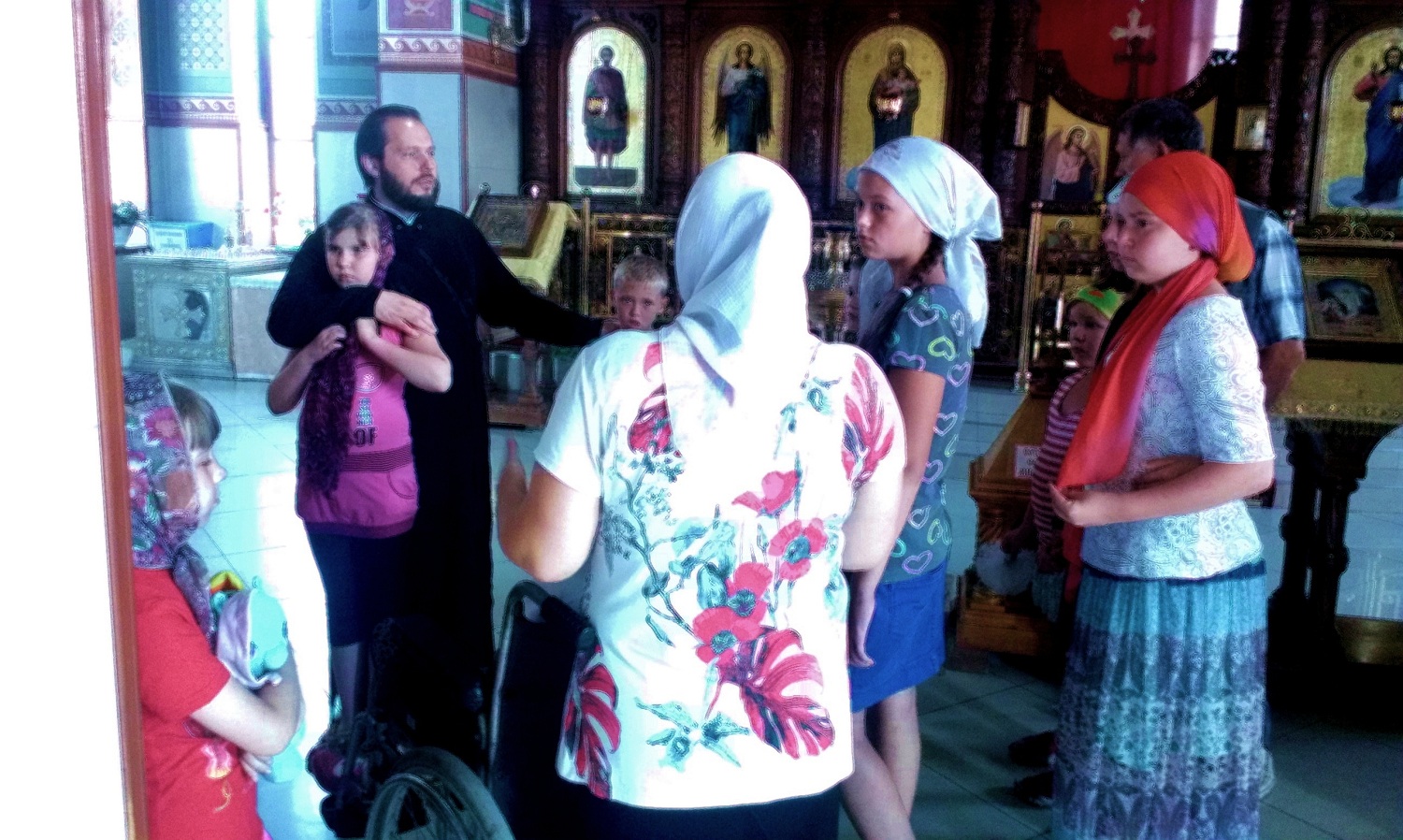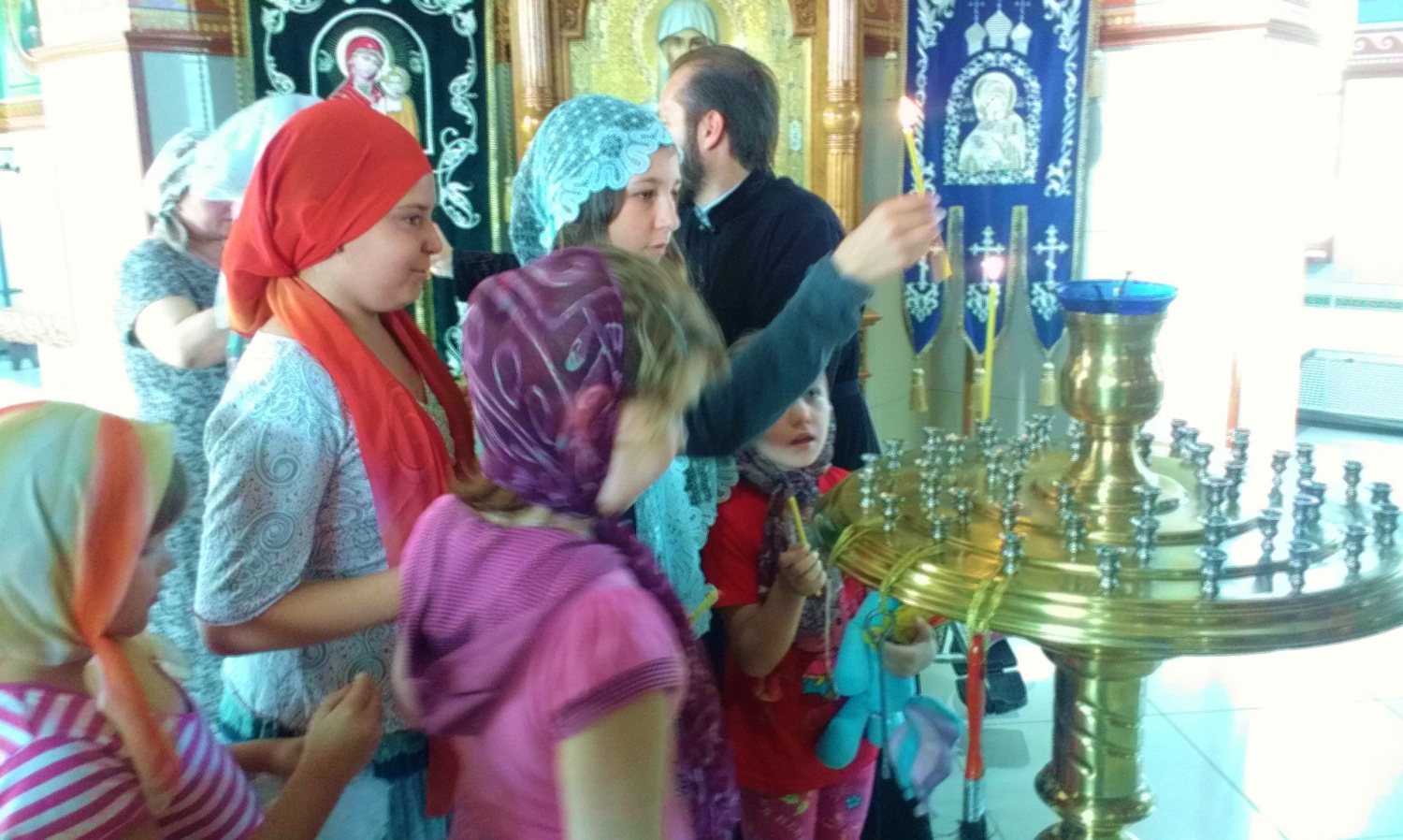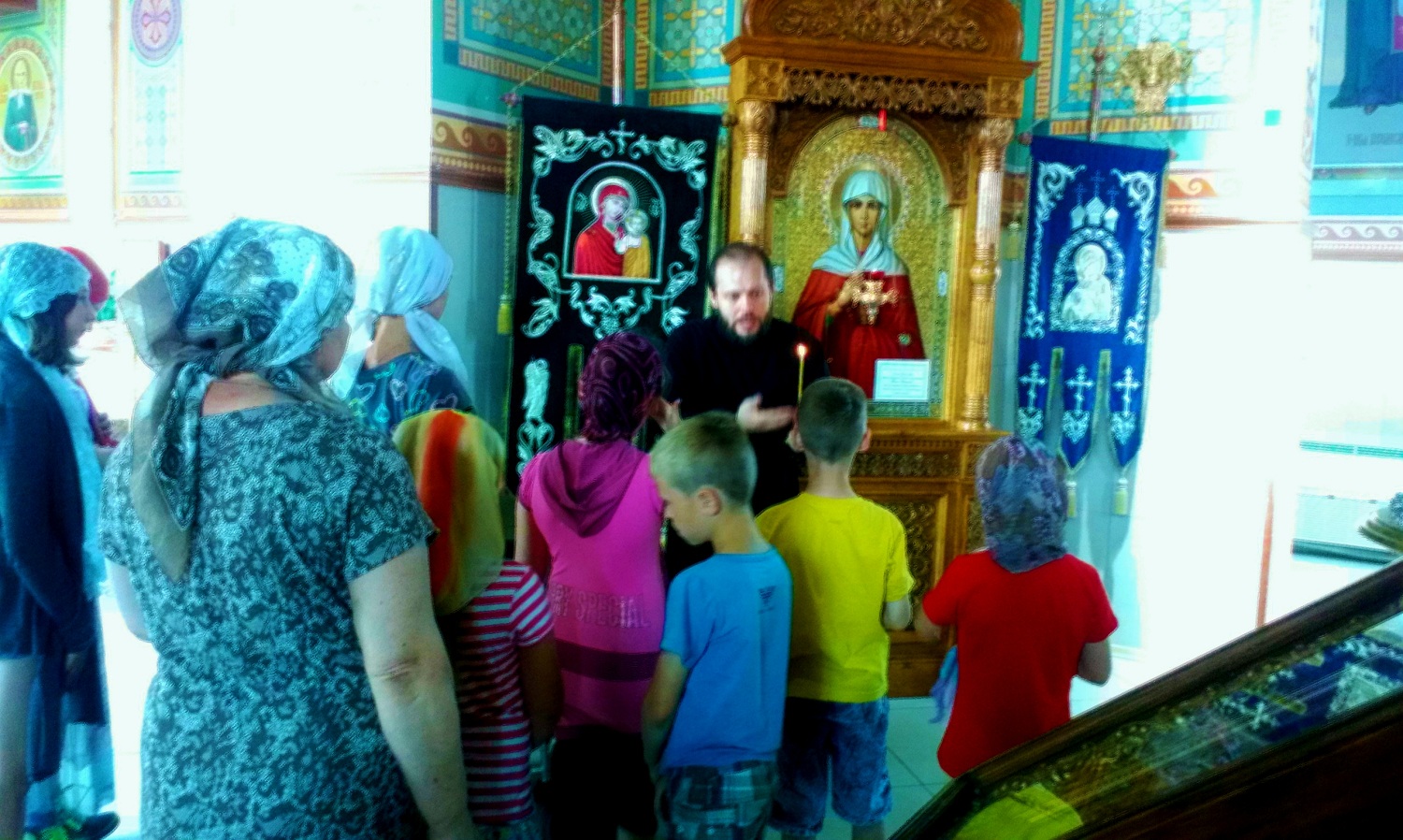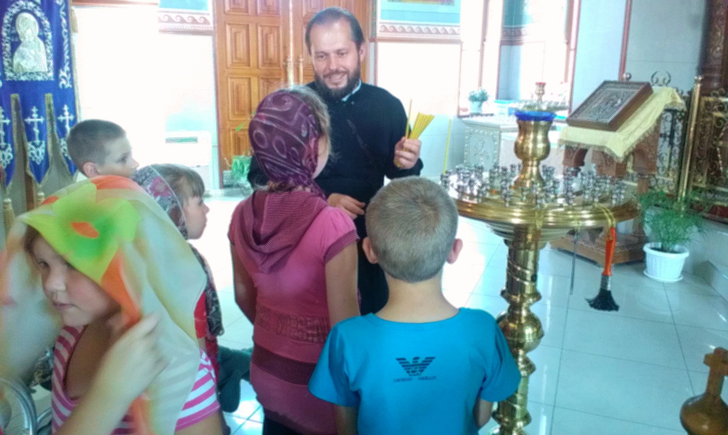 Накануне празднования дня Крещения Руси и памяти святого равноапостольного князя Владимира наш храм посетили воспитанники детского оздоровительного лагеря «Антошка», который работает на базе Авдеевского ДДЮТ. Дети совершили экскурсию по храму. Для некоторых она была ознакомительной. Настоятель храма протоиерей Андрей Карпец рассказал гостям о предназначении храма и поведении в нем, о кресте и крестном знамении, о значении церкви в жизни человека. Особое внимание он уделил рассказу о покровительнице нашего храма святой равноапостольной Марии Магдалине. На примере этой святой батюшка показал значение перемен в поступках человека к лучшему, к чему мы и должны стремиться. Отец Андрей рассказал о значении церковной свечи, показал, как правильно ее поставить на подсвечнике. Каждый ребенок с удовольствием поставил свою свечу за здравие родных и близких, а также за тех бабушек и дедушек, которые уже отошли ко Господу.