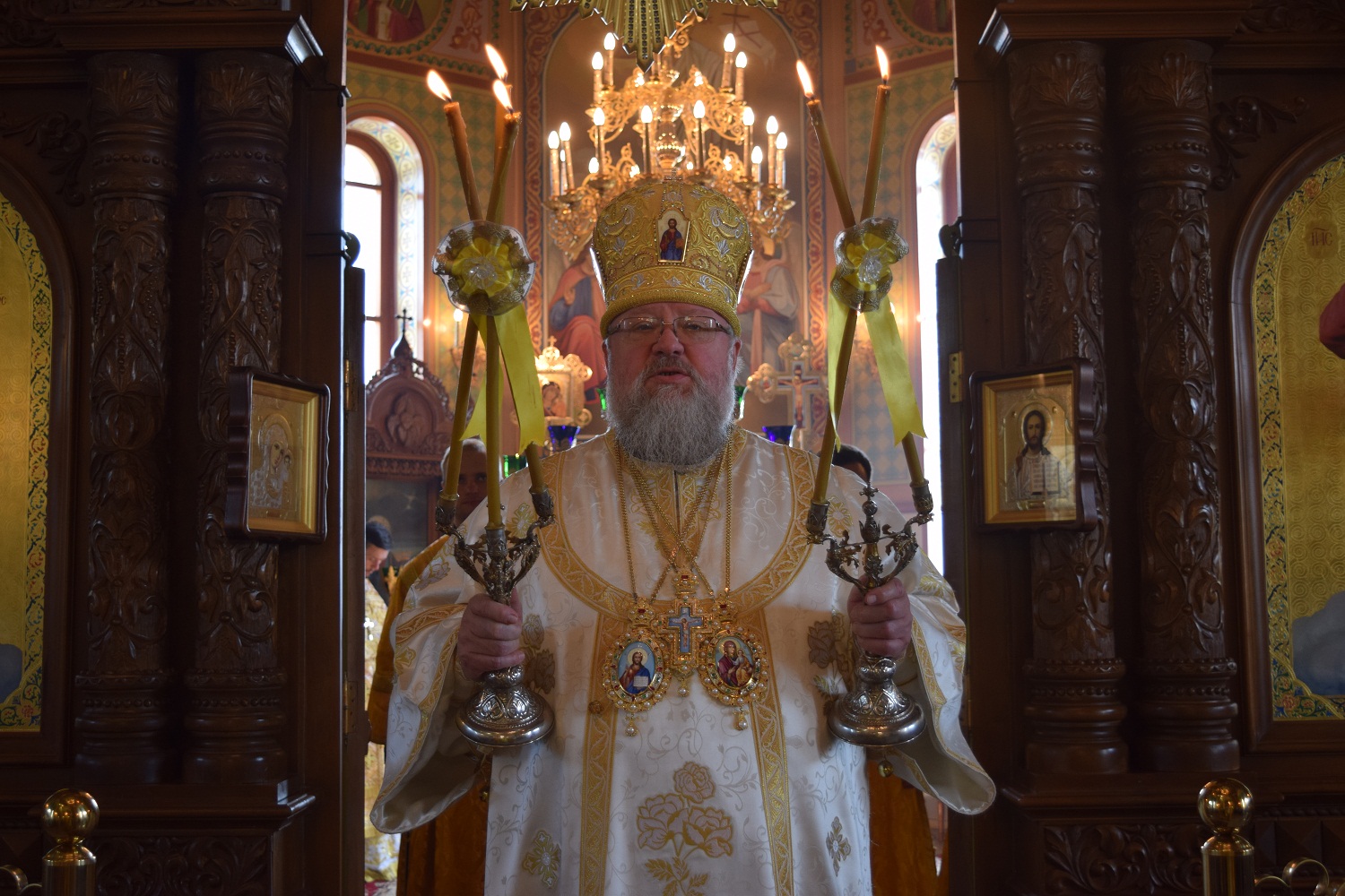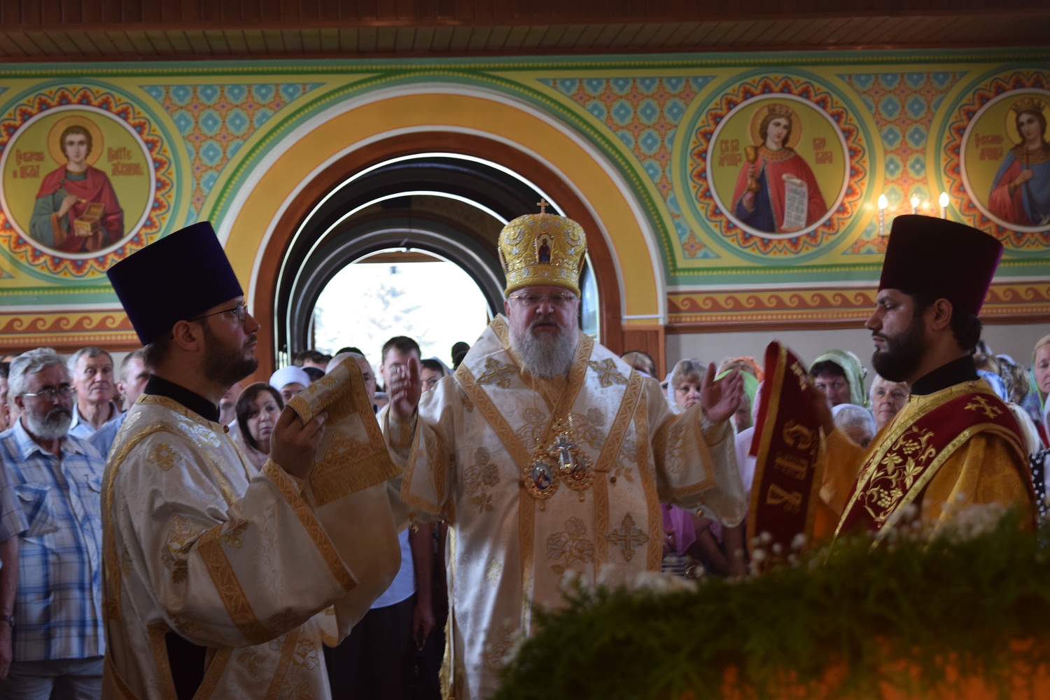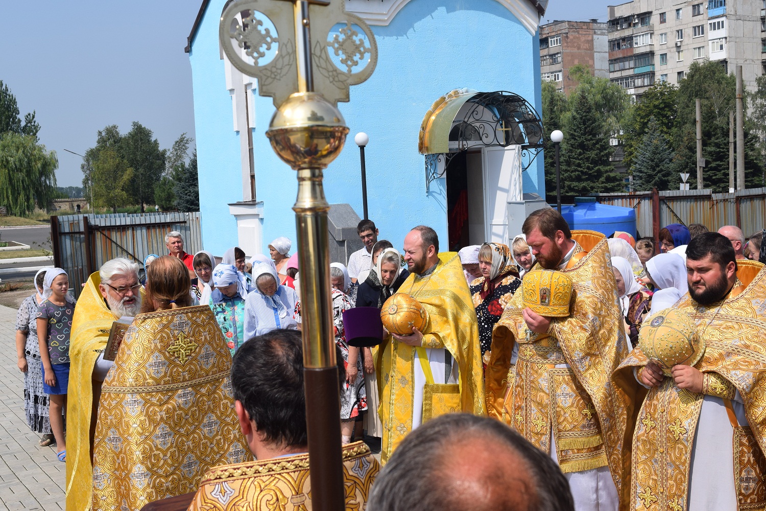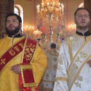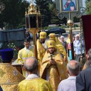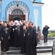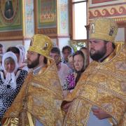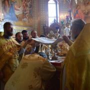 Правящий архиерей возглавил Святую Божественную Литургию в сослужении благочинного Преображенского округа г.Донецка протоиерея Петра Устименко, благочинного Красноармейского округа протоиерея Александра Кондратюка, благочинного Константиновского округа Горловской епархии протоиерея Андрея Чичиринды, настоятеля храма св.Марии Магдалины благочинного Авдеевского округа протоиерея Андрея Карпец, благочинного Новоселковского округа протоиерея Михаила и духовенства епархии.