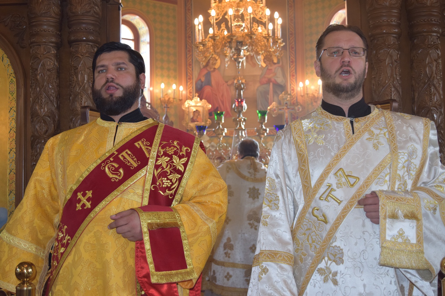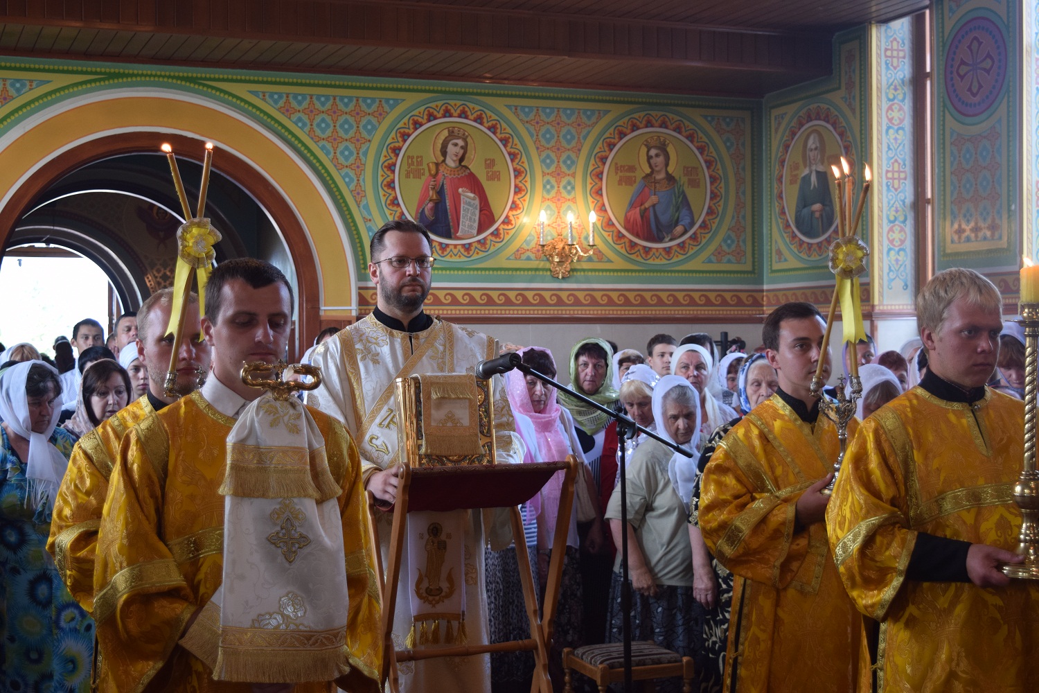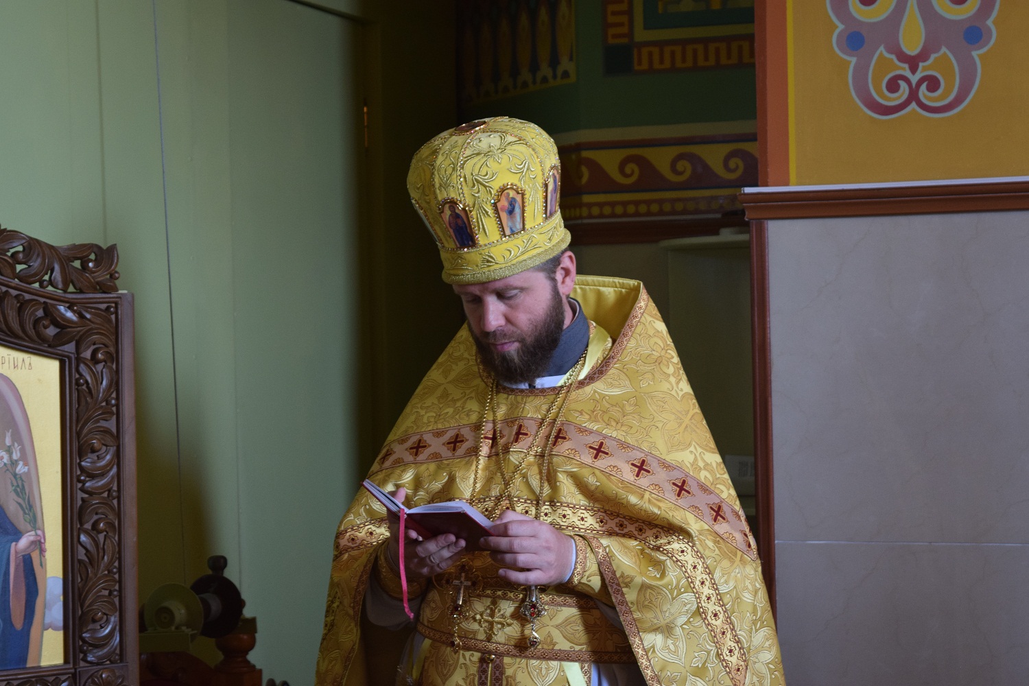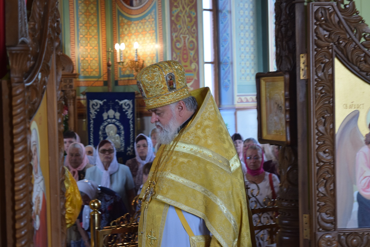 Правящий архиерей возглавил Святую Божественную Литургию в сослужении благочинного Преображенского округа г.Донецка протоиерея Петра Устименко, благочинного Красноармейского округа протоиерея Александра Кондратюка, благочинного Константиновского округа Горловской епархии протоиерея Андрея Чичиринды, настоятеля храма св.Марии Магдалины благочинного Авдеевского округа протоиерея Андрея Карпец, благочинного Новоселковского округа протоиерея Михаила и духовенства епархии.