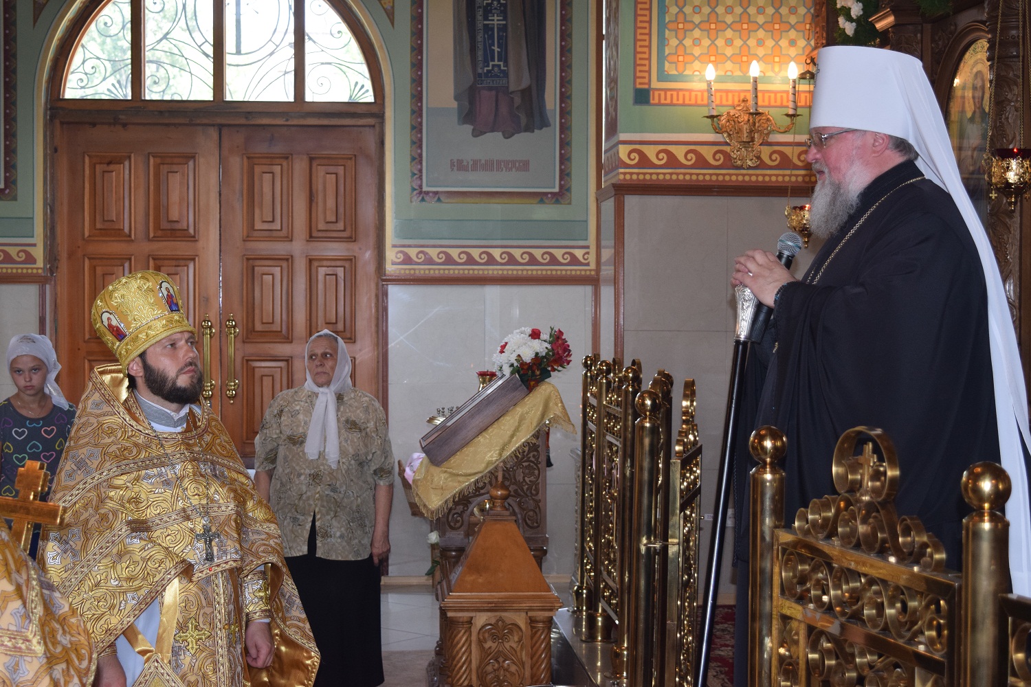 Присутствие владыки, великолепное пение хора, праздничное убранство храма, роскошные цветочные композиции, множество сияющих радостью глаз – всё способствовало соборной молитве и прекрасному настроению. По окончании Божественной Литургии состоялся торжественный Крестный ход вокруг храма с хоругвями и иконами, после чего Митрополит Иларион ещё раз воздал хвалу святой равноапостольной Марии Магдалине, покровительнице нашего храма и города, молитвеннице за всех православных христиан. С особым вниманием и умилением прихожане слушали проповедь Высокопреосвященнейшего владыки, который с архипастырской любовью обратился к настоятелю храма и всем верующим со словами поздравлений, благодарности и восхищения стойкостью, терпением и преданностью родному храму. Митрополит Иларион пожелал всем мира, добра, веры, терпения и любви друг к другу.