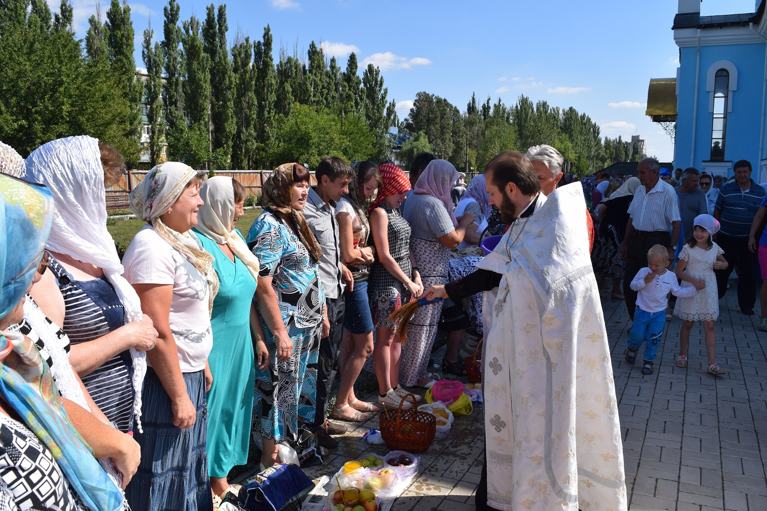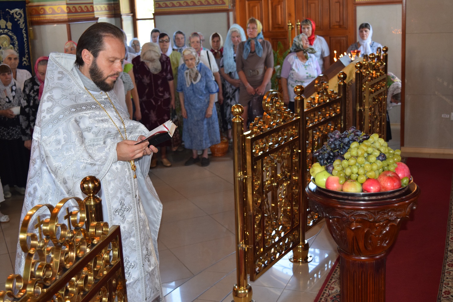 Праздник Преображения Господнего – двунадесятый, один из самых больших церковных праздников. В нашем храме был совершен водосвятный молебен с освящением воды и различных древесных плодов: яблок, груш, слив, винограда и других. После молебна состоялась Святая Божественная Литургия. Праздник Преображения имеет еще одно название – яблочный (второй) Спас.