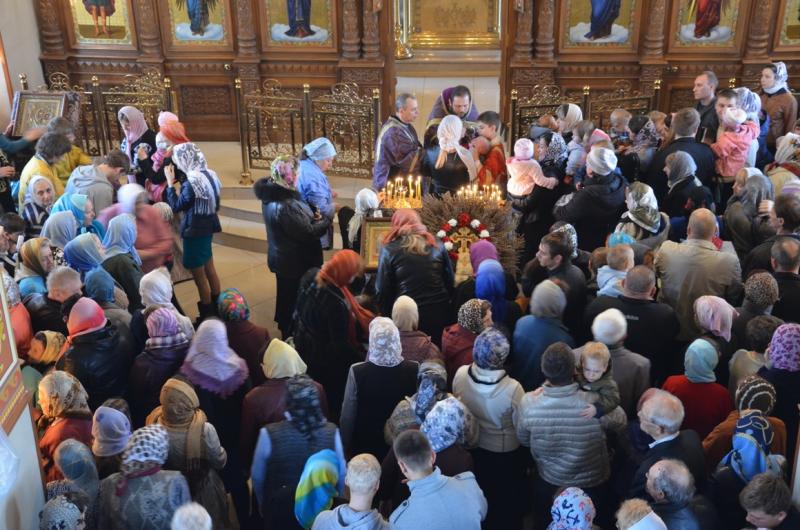 Святая Церковь празднует двойной праздник: Крестопоклонную Неделю и Благовещение Пресвятой Богородицы. В храме святой Марии Магдалины была отслужена праздничная литургия, во время которой многие люди причастились Святых Христовых Таин.
