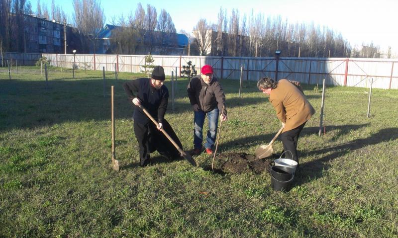 Как всегда, Вадим Яковлевич приехал не с пустыми руками - он привез 50 саженцев плодовых деревьев. Сотворив молитву, Вадим Яковлевич вместе с настоятелем храма святой равноапостольной Марии Магдалины протоиереем Андреем Карпец, высадили деревья на территории храма.