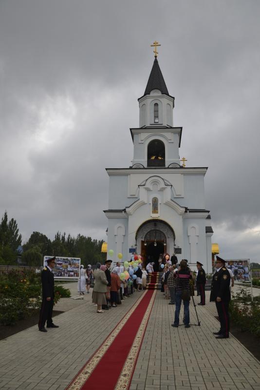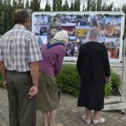 Для гостей и прихожан на улице была сделана интересная фотогалерея, на которой запечатлены кадры со дня закладки камня в основание храма, возведение его стен, освящение куполов и колокольни, росписи, проведения Божественных служб. Особенное место среди фотографий занимают снимки детей воскресной школы, детей приюта, школьников.