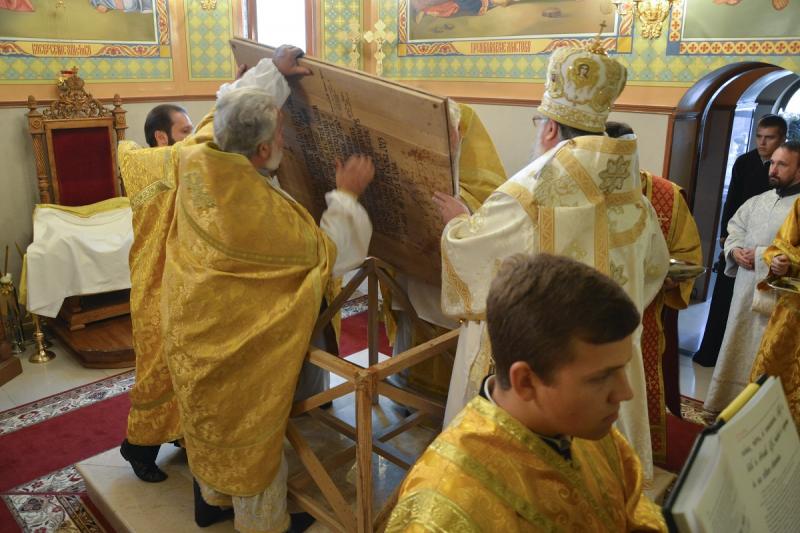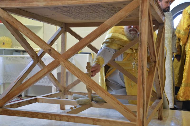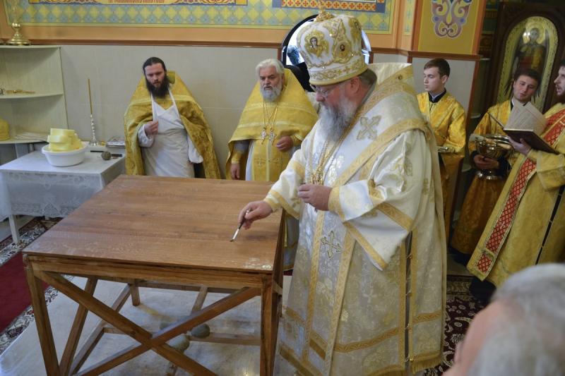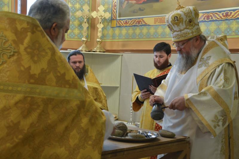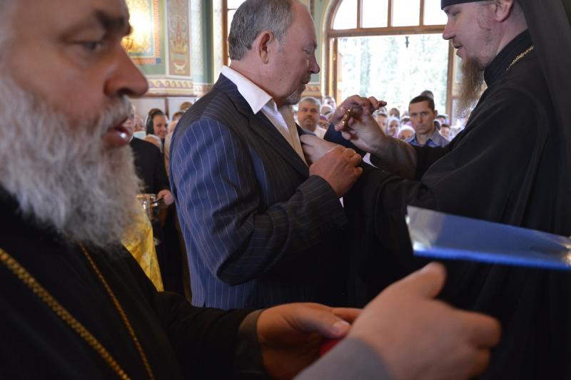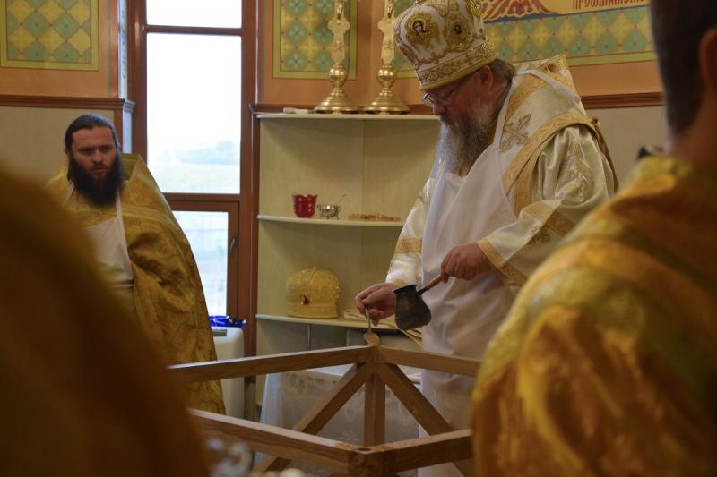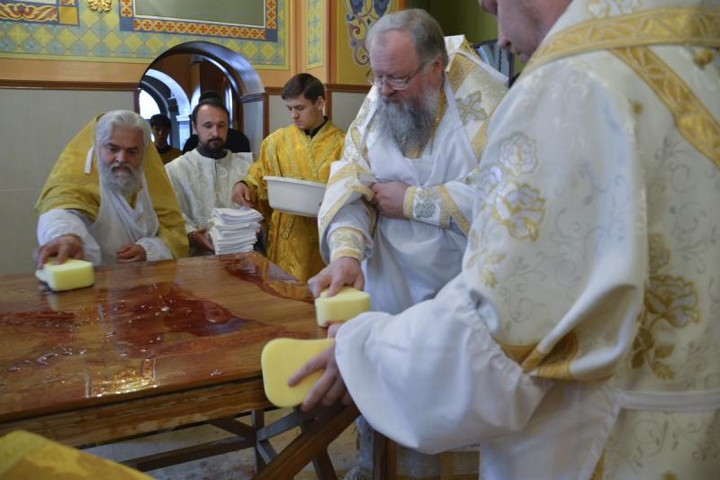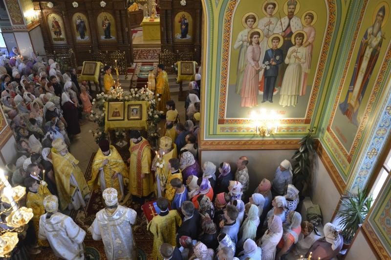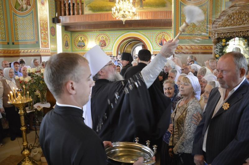 Во время богослужения состоялся чин освящения престола, а также всего храма. Престол и стены храма миропомазывались в ознаменование осенения их Благодатью Святого Духа. Вокруг храма со Святыми Мощами прошел крестный ход, который возглавил правящий Архиерей Митрополит Иларион. В этом торжественном шествии с крестами, хоругвями и иконами приняли участие все присутствующие на празднике. Священнодействия и молитвы несли глубочайший смысл и духовную наполненность.