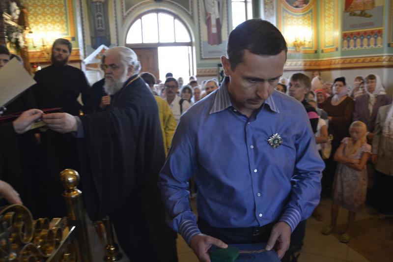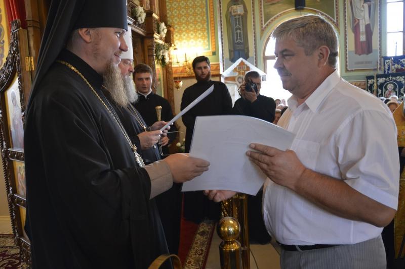 После Божественной литургии Высокопреосвященнейший Владыка Митрополит Иларион выразил особую благодарность, Его Высокопреосвященству Архиепископу Елисею, трудами которого был построен храм, настоятелю храма святой Марии Магдалины протоиерею Андрею Карпец наградив его крестом с украшениями и благодетелям, которые внесли наиболее весомый вклад и посильную помощь в благоустройстве храма, отметив их высокими церковными наградами: