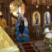 В завершении престольного праздника Владыка Митрополит преподал всем благословение, окропив святой водой, после чего состоялась трапеза, на которую были приглашены все прихожане и гости храма.
