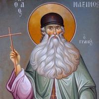 Святой преподобный Максим Грек родился в г.Арте (Албания)около 1470 года, был сыном богатых родителей. С детства много изучал разные науки во Франции, Италии, Венеции. Стал иноком приняв постриг на Святой Горе Афон в 1507 году. По приглашению русского князя в 1517г. инок Максим отправился в Москву для перевода греческих рукописаний. Дорогой в Москву, святой выучил русский язык.