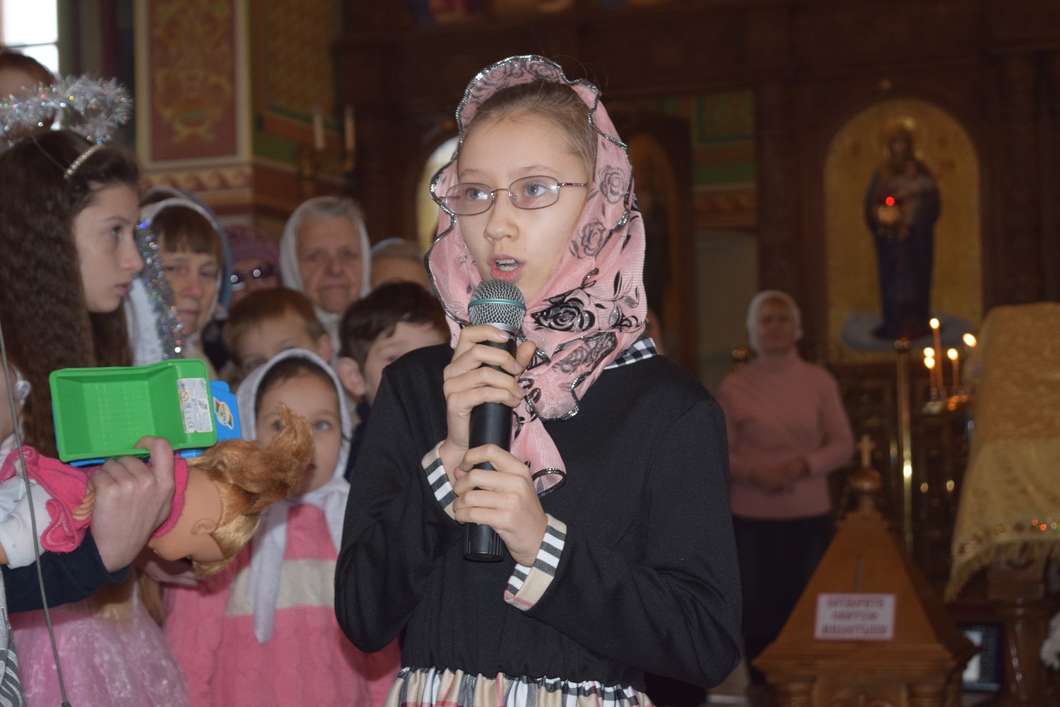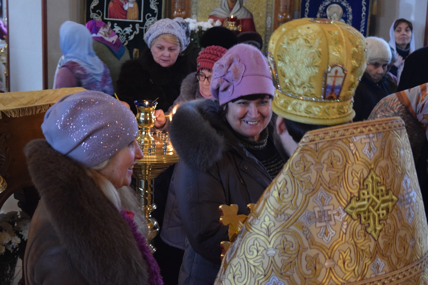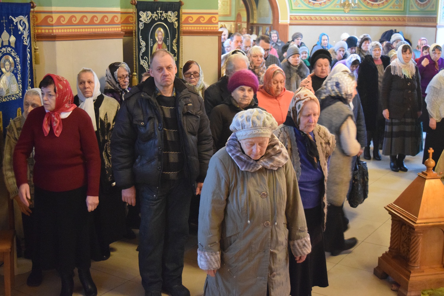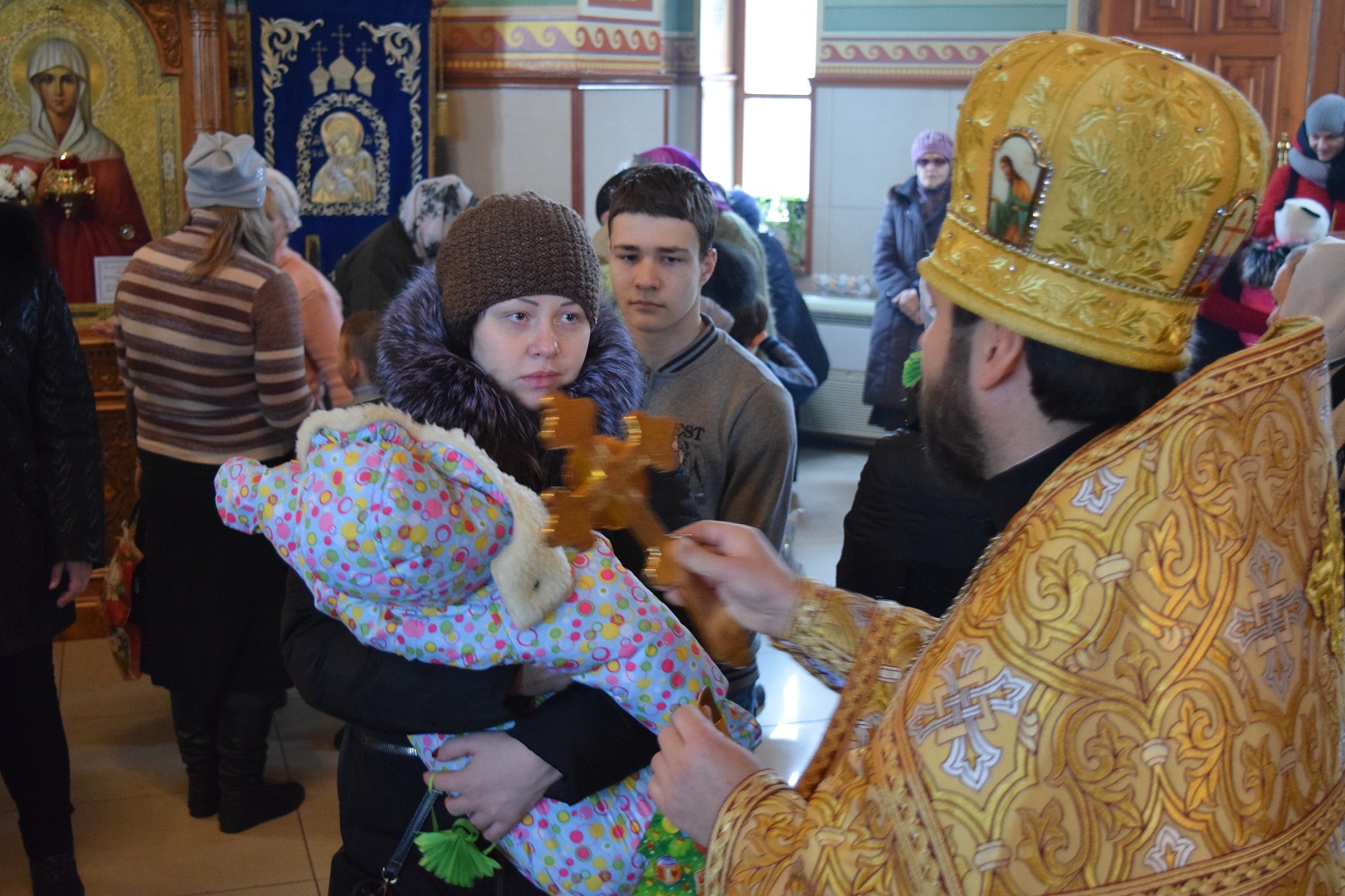 Молим тя, буди надежда всех христиан, верных защитель, алчущих кормитель, плачущих веселие, болящих врач, по морю плавающих управитель, убогих и сирых питатель и всем скорый помощник и покровитель, да мирное зде поживем житие и да сподобимся видети славу избранных Божиих на небеси, и с ними непрестанно воспевати единаго в Троице поклоняемого Бога во веки веков. Аминь.