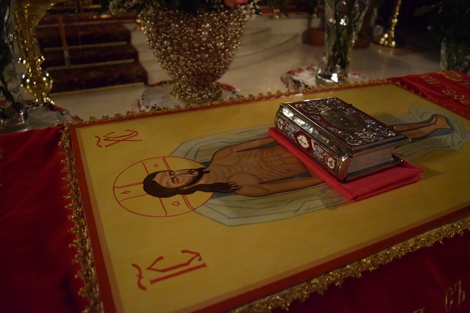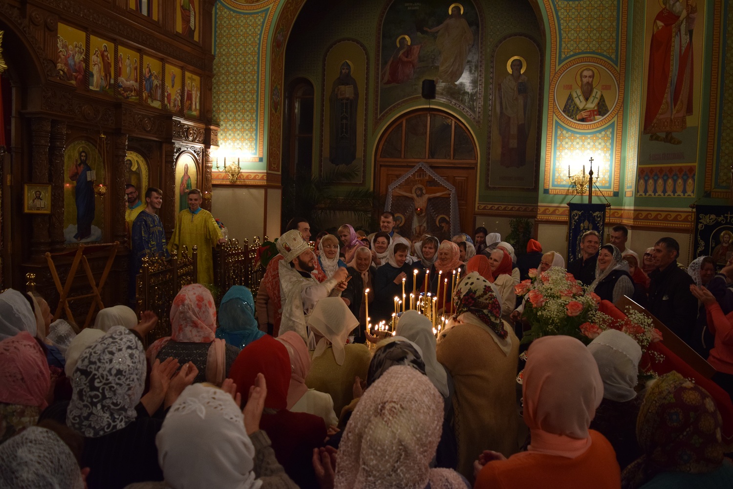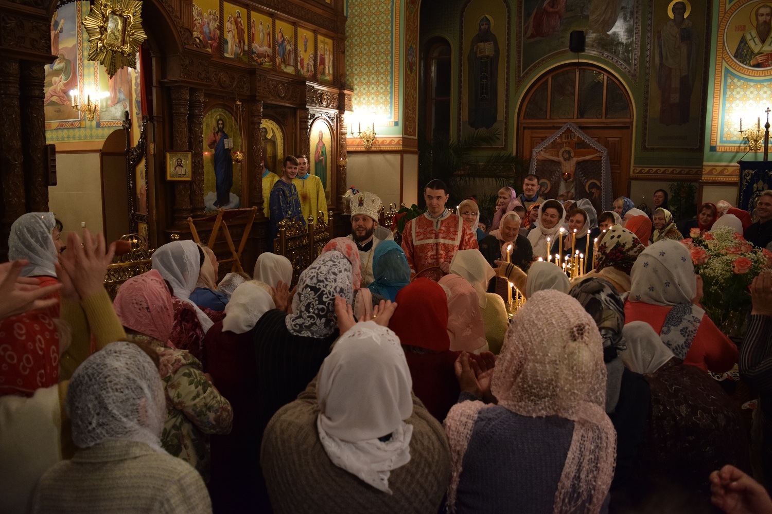 Стихира праздника Пасхи Христовой, глас 6: Воскресение Твое, Христе Спасе, / Ангели поют на небесех, / и нас на земли сподоби / чистым сердцем / Тебе славити.