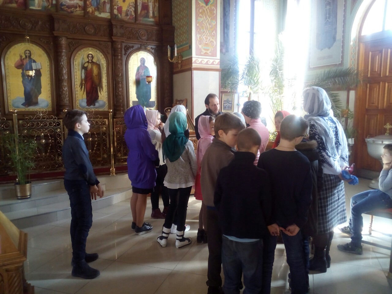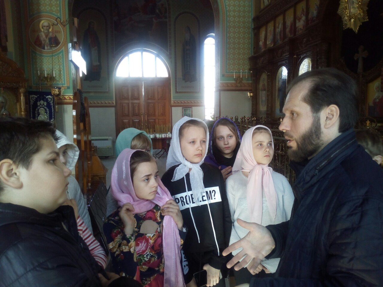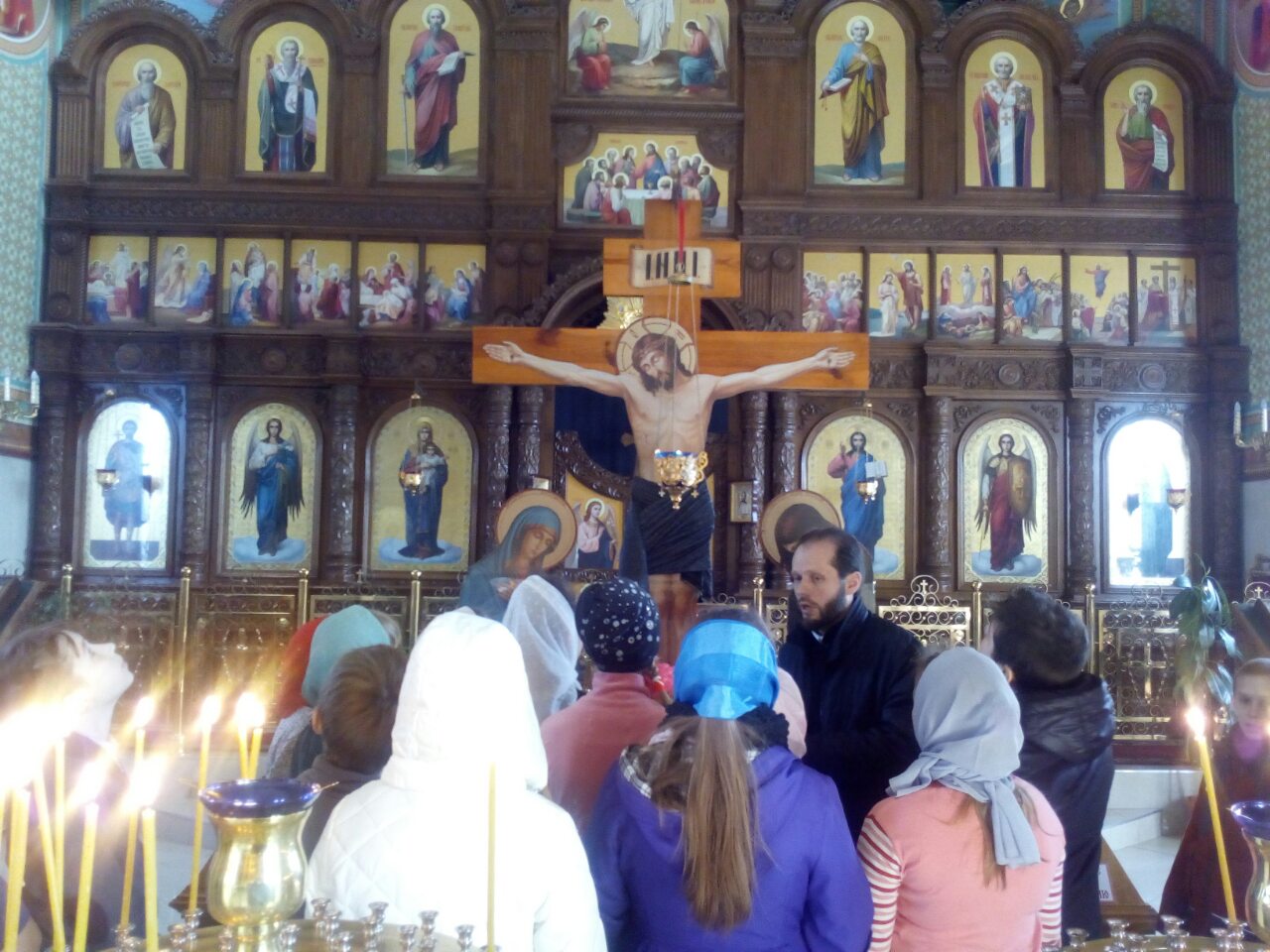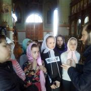 Батюшка дал детям предварительные понятия об устроении храма и его значении, ознакомил с понятием «икона». Наибольшее внимание было уделено иконе распятия Господа нашего и Спасителя Иисуса Христа, Сына Божия. Дети с большим вниманием слушали отца Андрея о спасительной жертве, страданиях и Воскресении нашего Спасителя, Который пострадал ради нас, принял смерть за наши грехи. Также отец Андрей рассказал о покровительнице нашего храма святой равноапостольной Марии Магдалине, которая стала первой благовестницей Христова Воскресения.