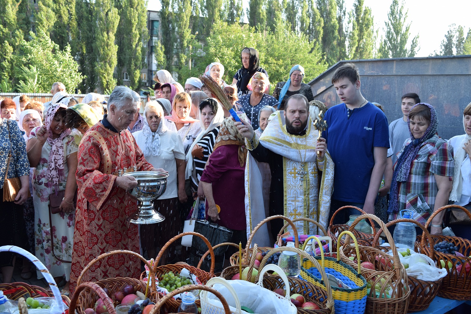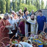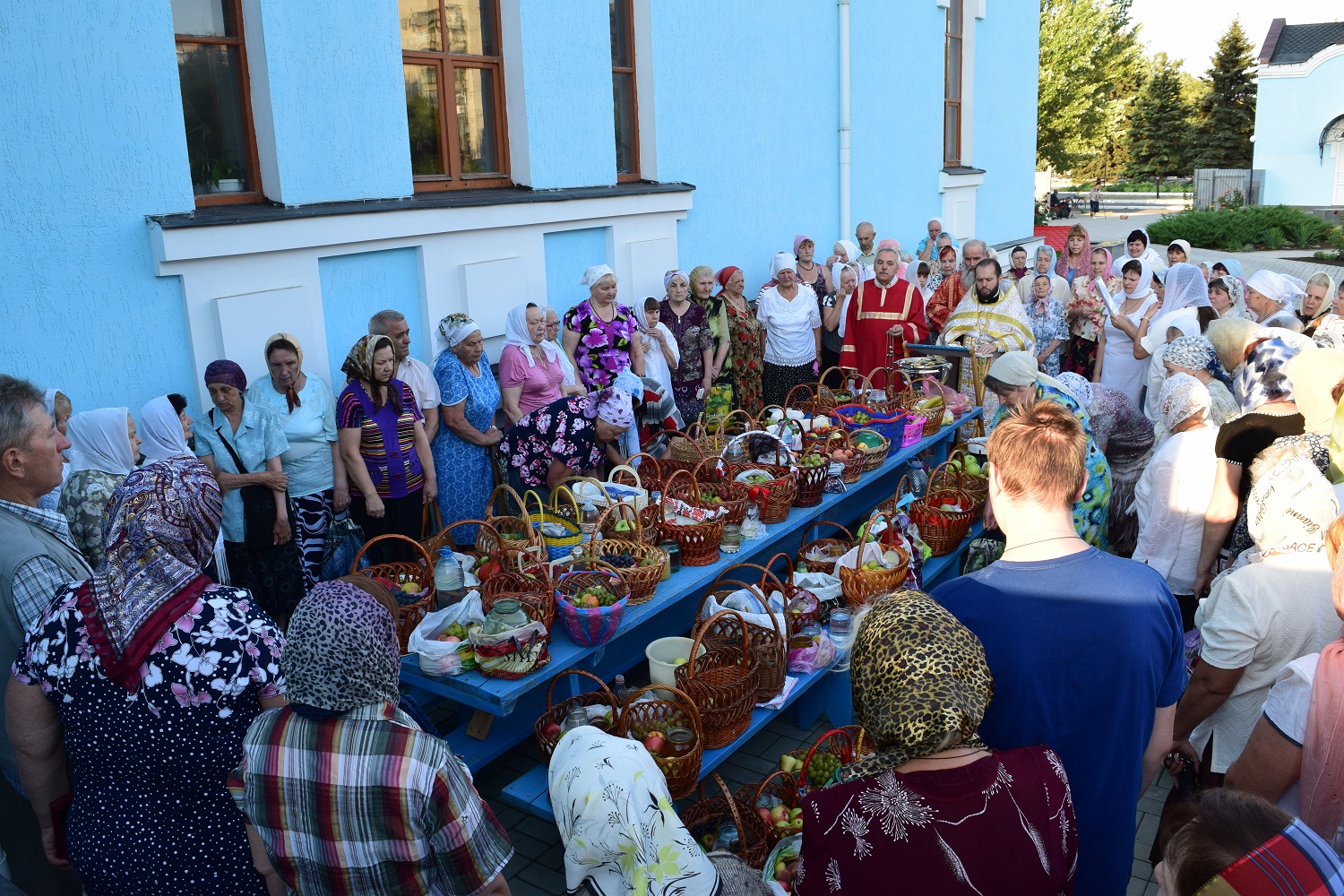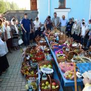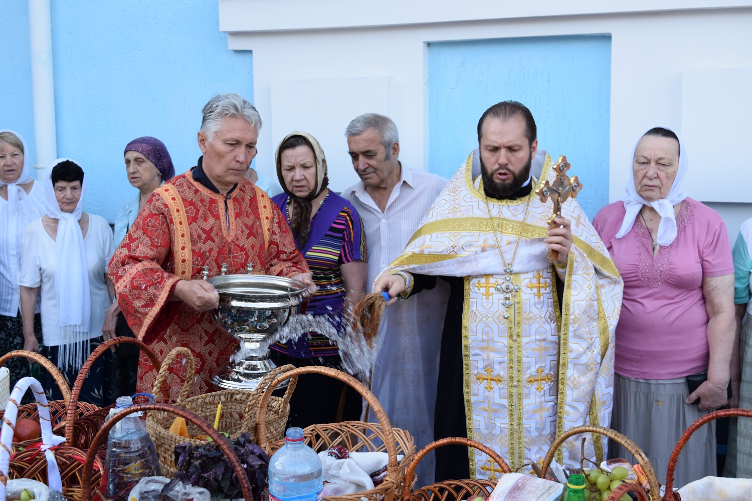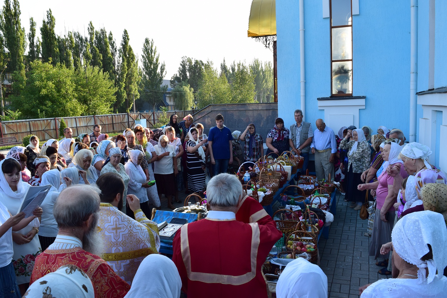 В этот день освящается новый урожай- яблоки, виноград и другие древесные плоды. Этот обычай- священный и знаменательный. Первые плоды нового урожая приносили к алтарю и в Ветхом Завете, по Закону Моисееву. В нашем храме также состоялся молебен с освящением плодов, после чего была совершена Святая Божественная Литургия. Многие прихожане причастились Святых Пречистых Таин Господа нашего Иисуса Христа. После Литургии освящение плодов вновь прибывших людей было продолжено.