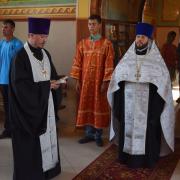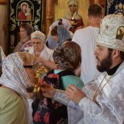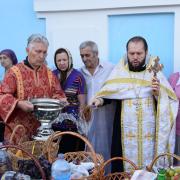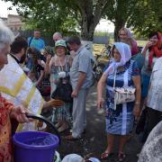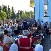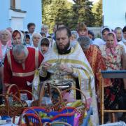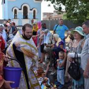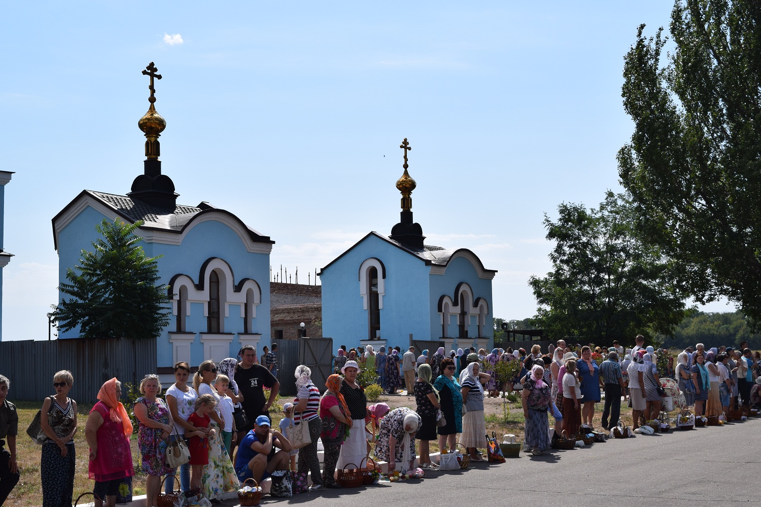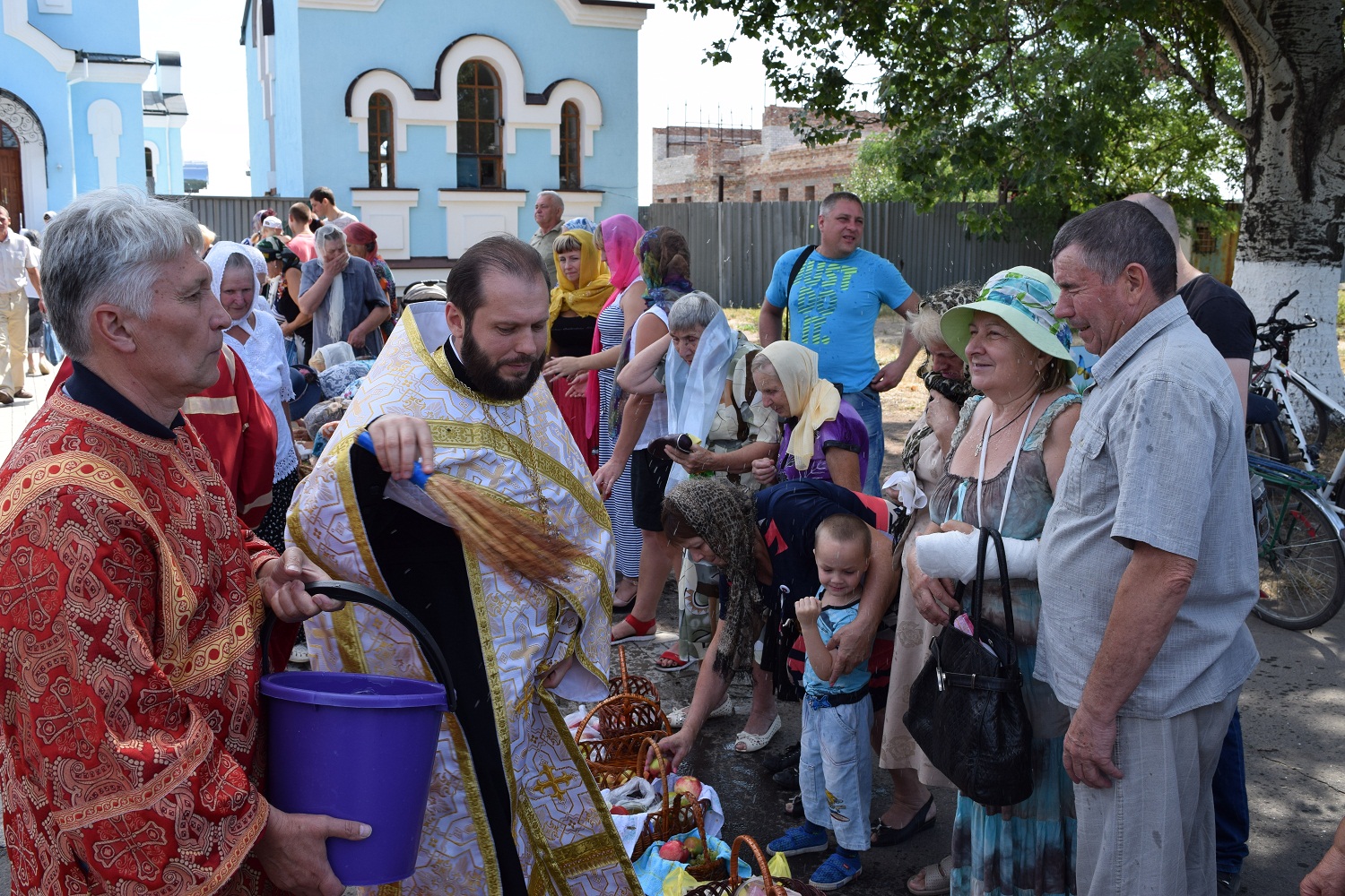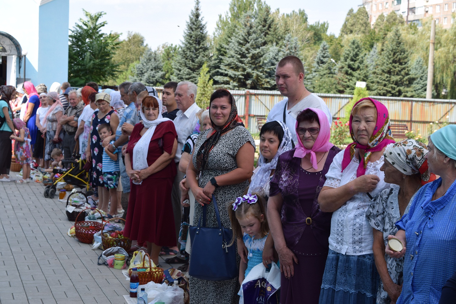 В этот день освящается новый урожай- яблоки, виноград и другие древесные плоды. Этот обычай- священный и знаменательный. Первые плоды нового урожая приносили к алтарю и в Ветхом Завете, по Закону Моисееву. В нашем храме также состоялся молебен с освящением плодов, после чего была совершена Святая Божественная Литургия. Многие прихожане причастились Святых Пречистых Таин Господа нашего Иисуса Христа. После Литургии освящение плодов вновь прибывших людей было продолжено.