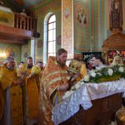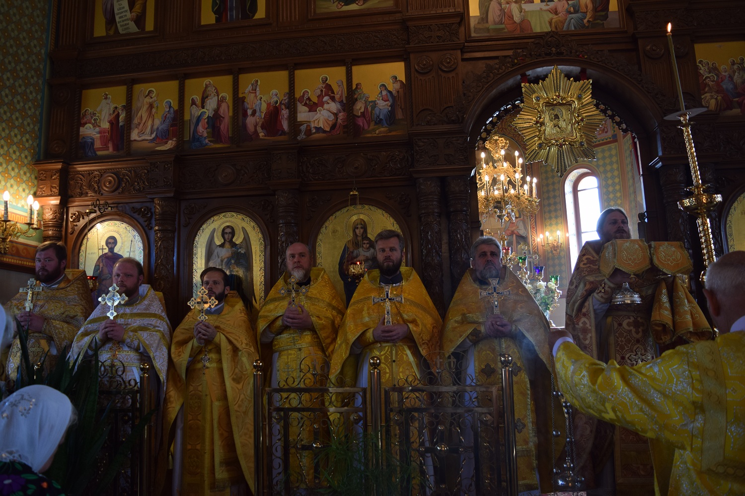 За Божественной Литургией многие прихожане исповедались и причастились Святых Христовых Тайн. По окончании богослужения состоялся торжественный Крестный ход вокруг храма, после которого настоятель храма, протоиерей Андрей Карпец, поздравил всех с праздником и поблагодарил за молитвы.