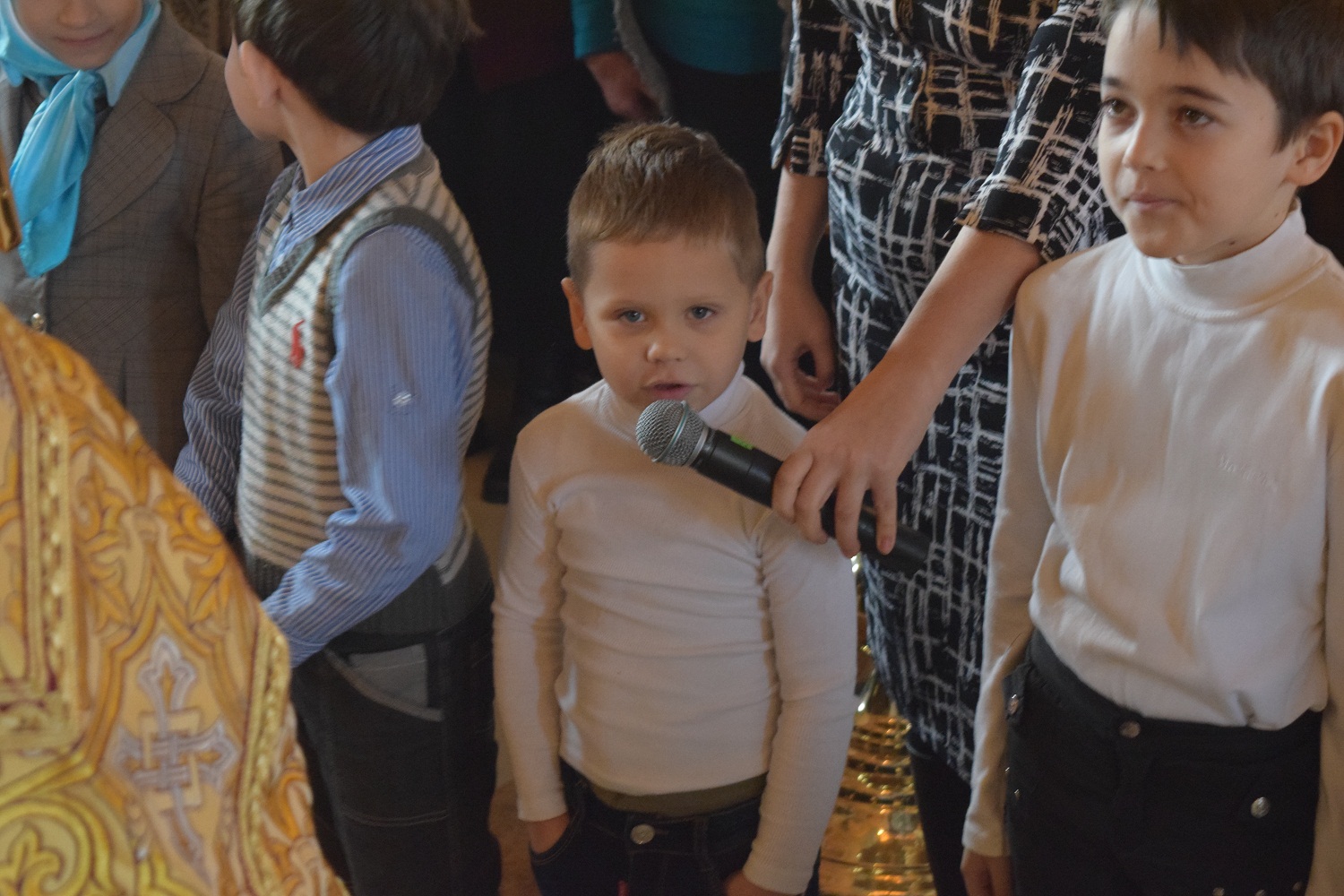 Подобно своему Небесному покровителю, батюшка ведет свою паству за собой, ко Христу.