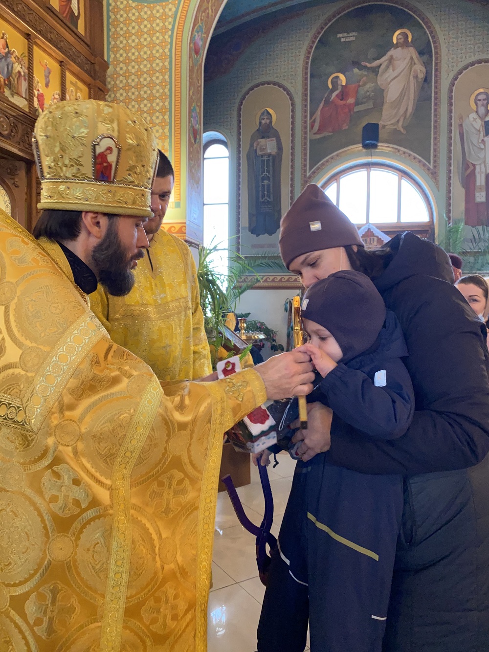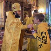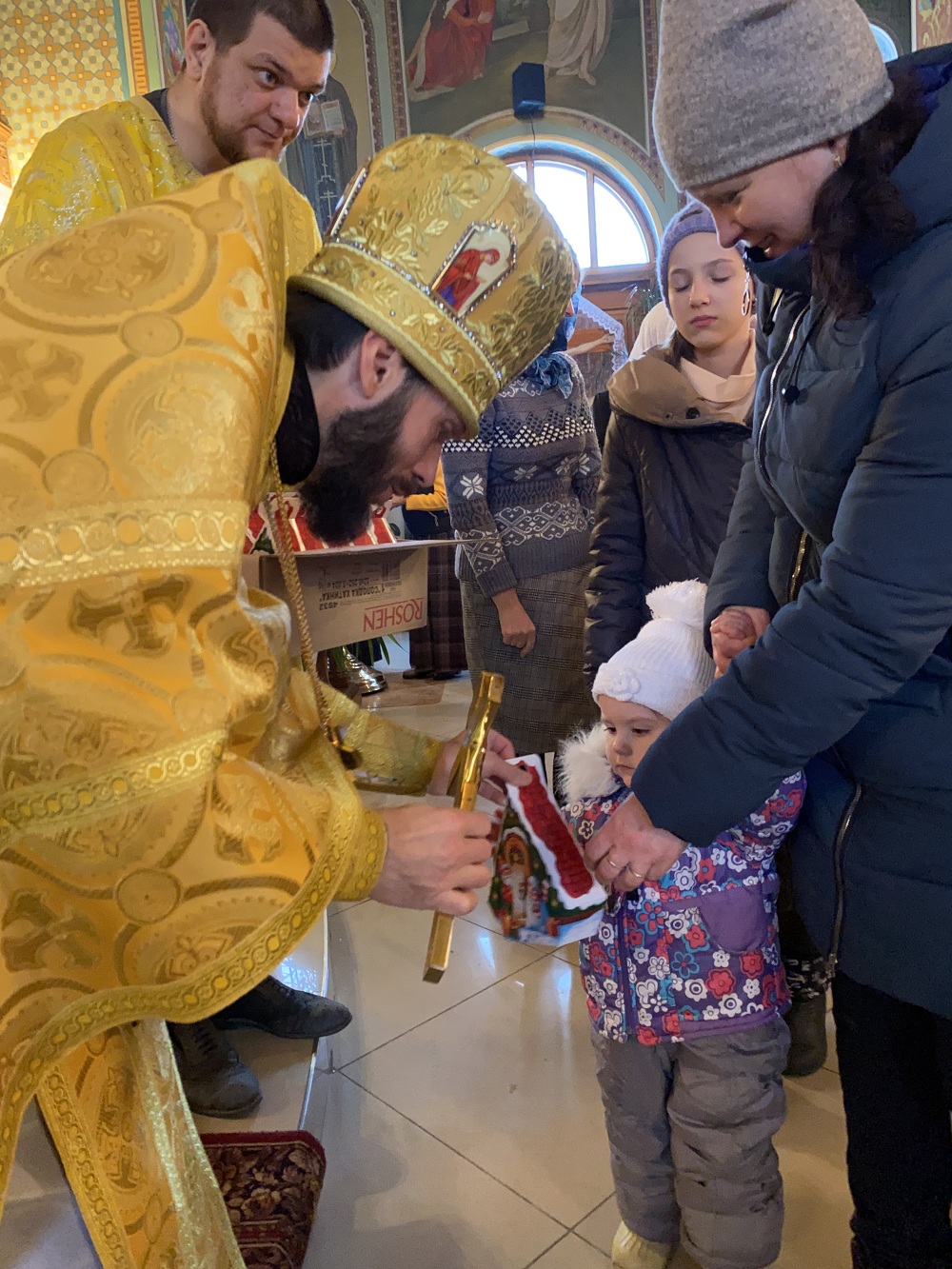 По окончании богослужения отец Андрей поздравил всех с праздником и традиционно подарил сладкие подарки всем детям.
