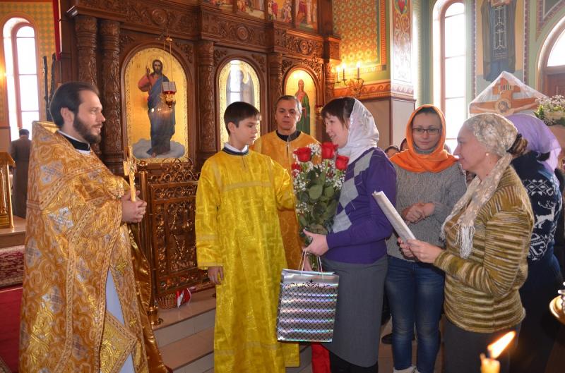 Все прихожане храма, певчие детского и взрослого хоров искренне, от всего сердца поздравляли отца Андрея с праздником. Духовные чада выразили батюшке свою безмерную любовь и признательность, благодарность за то, что, подобно своему Небесному покровителю Андрею Первозванному, он ведет свою паству за собой, ко Христу. Также все благодарили Господа Бога за то, что Он даровал такого настоятеля храма, которого все очень любят, за то, что каждый человек, приходящий к отцу Андрею, старается брать с него пример. Дорогому батюшке пожелали крепкого здоровья и долгоденствия, духовной радости, крепости духовных и телесных сил, мира, любви и Божьей Милости на многая и благая лета.