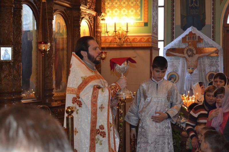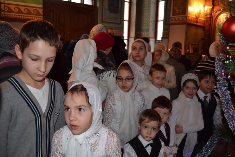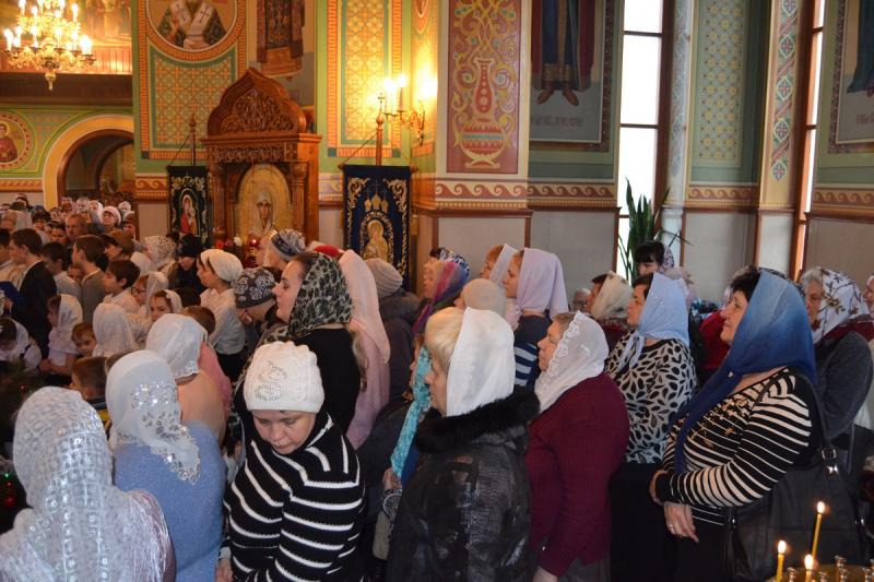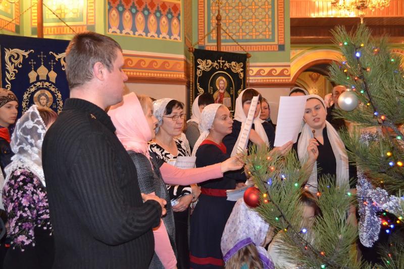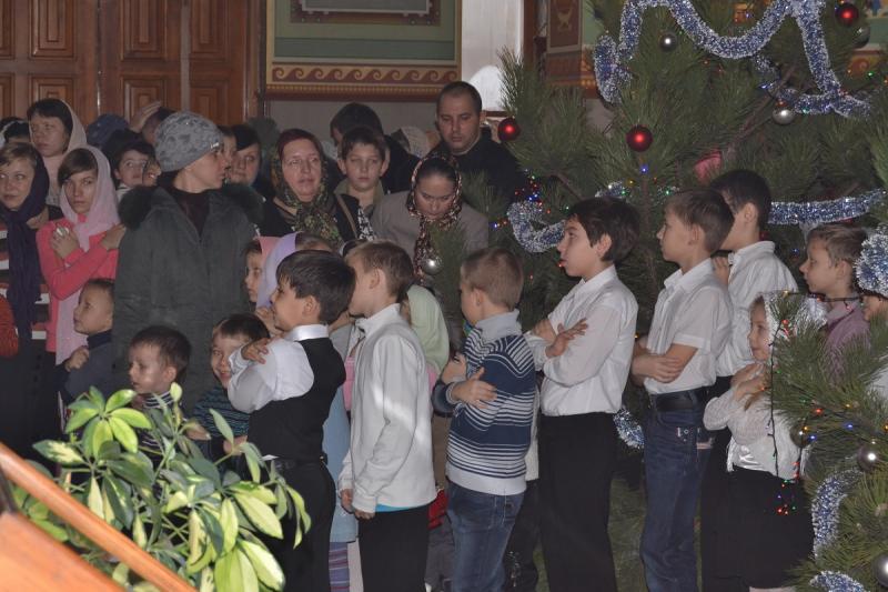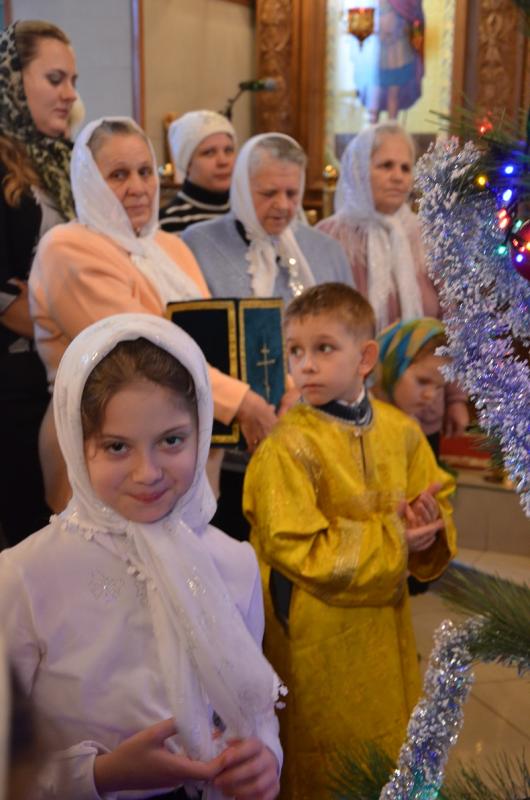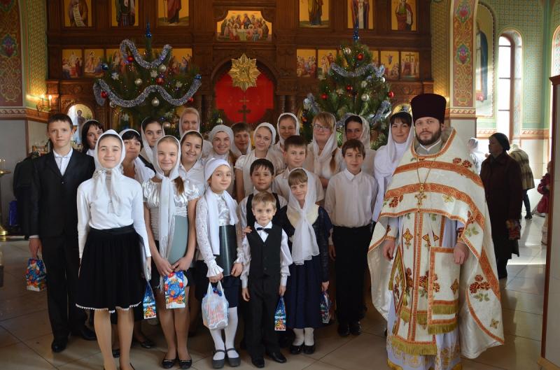Настоятель храма протоиерей Андрей Карпец поздравил прихожан с этим светлым и радостным праздником. Он пожелал своей пастве крепкого здоровья, терпения, милости Божьей во всех делах. В своей проповеди батюшка обратился к людям с тем, что Господь наш Иисус Христос пришел на землю, чтобы спасти человечество от духовной смерти, и люди должны стараться исполнять Его волю, жить благочестиво, мирно, соблюдать Заповеди Божьи, всегда имея в своих сердцах Новорожденного Спасителя. Также отец Андрей ознакомил прихожан с Рождественским посланием Святейшего Патриарха Московского и всея Руси Кирилла. Всем детям батюшка раздал сладкие подарки.