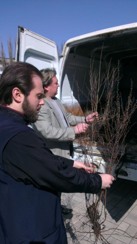 Стараниями настоятеля храма о. Андрея Карпец и прихожанами храма высаженные растения пополнят молодой сад, украсят территорию храма.