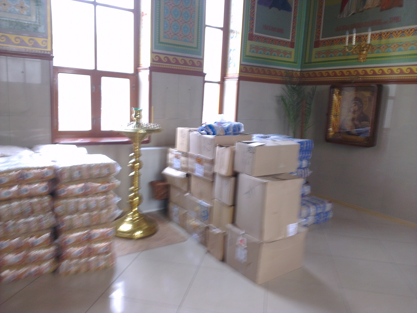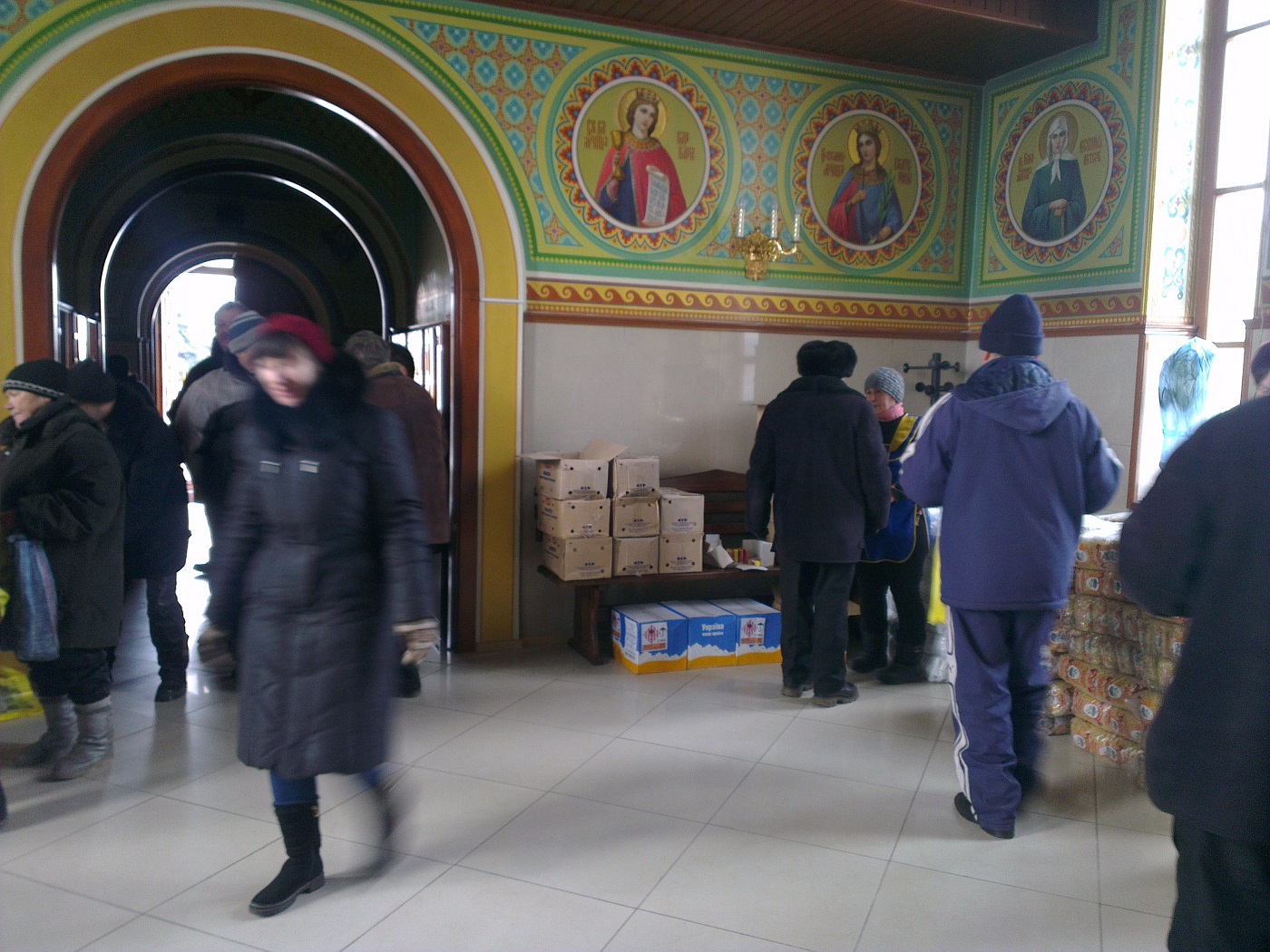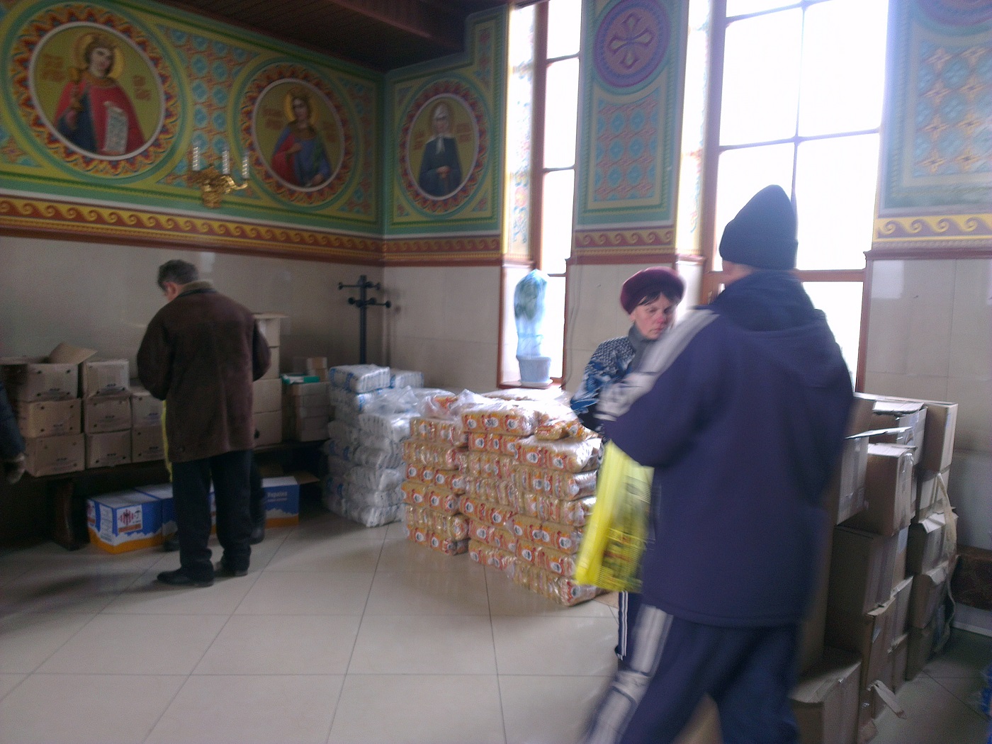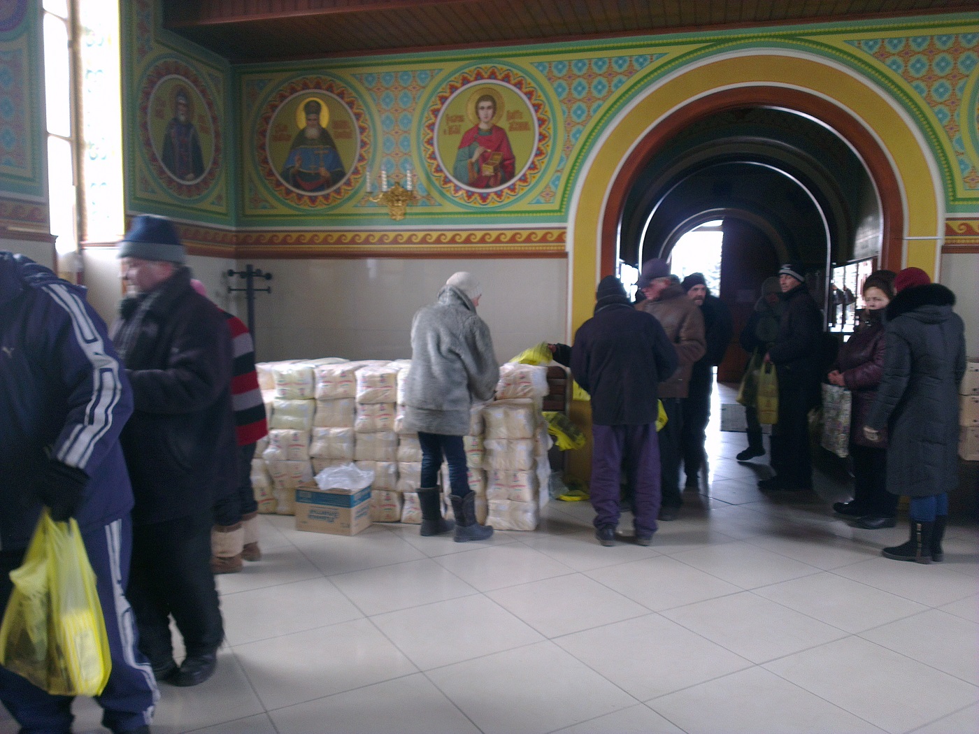 Так, сегодня в храм святой равноапостольной Марии Магдалины поступила гуманитарная помощь для жителей Авдеевки от архиепископа Изюмского и Купянского Елисея. Много людей получили наборы, в которые входят мука, сахар, соль, крупы, макаронные изделия, растительное масло, мыло, свечи, спички, хлеб.