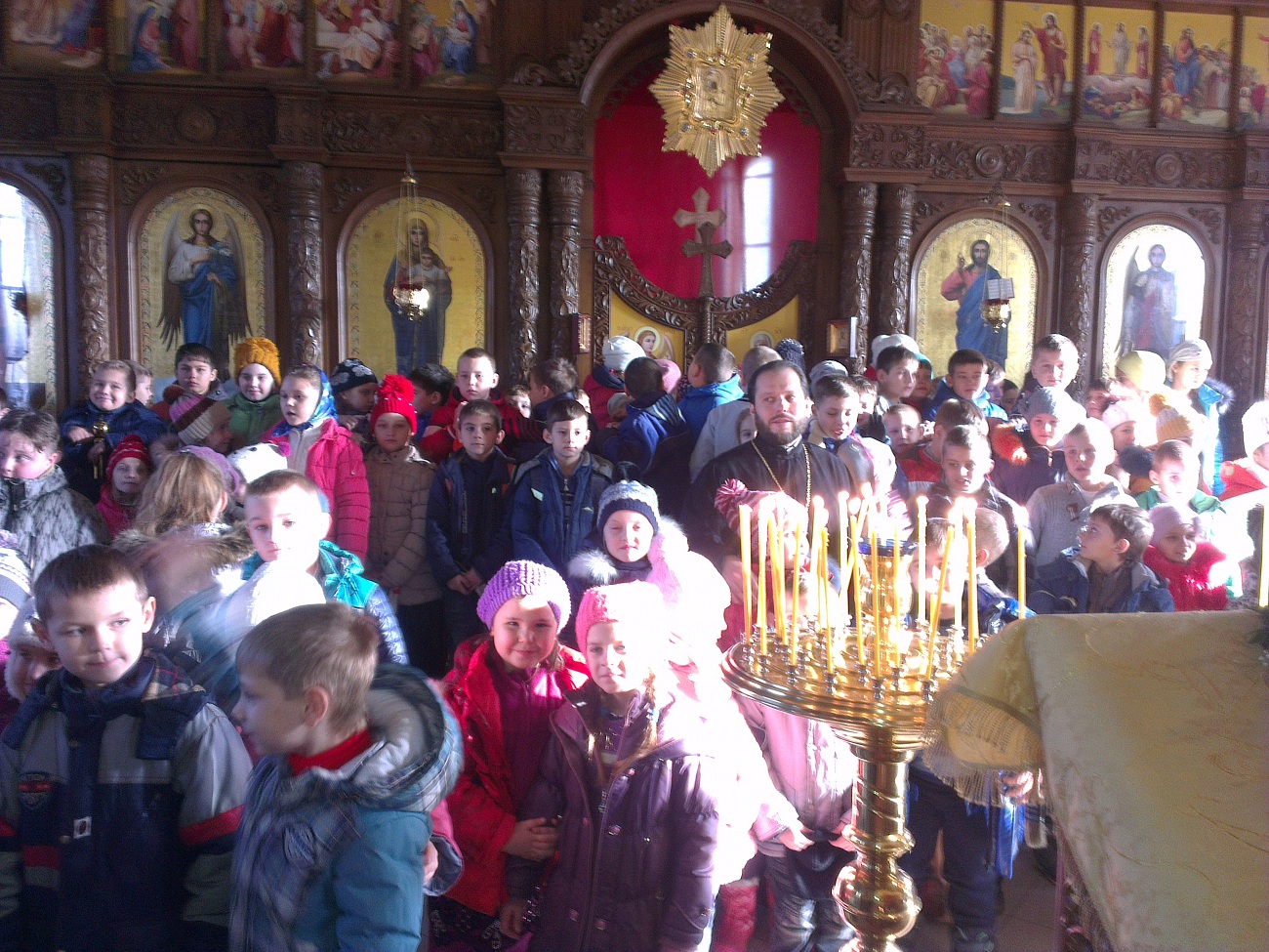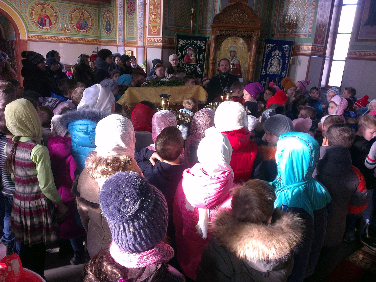 В преддверии одного из любимых и почитаемых праздников – дня святителя Николая Чудотворца – наш храм посетили дети. 110 учащихся 1-4 классов Авдеевской общеобразовательной школы № 6 вместе со своими учителями и директором Шляховой Викторией Васильевной пришли в храм для того, чтобы побольше узнать об этом святом.