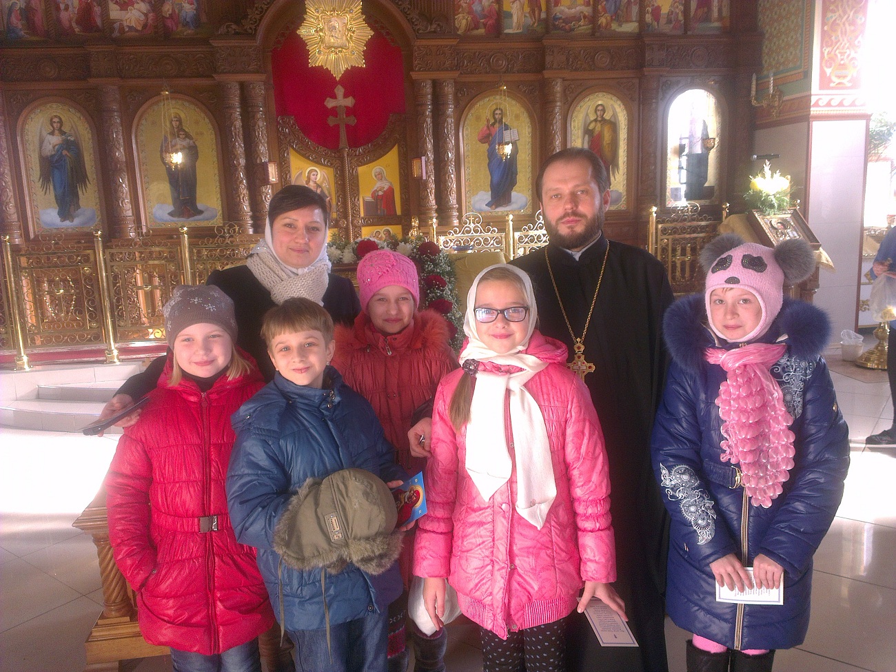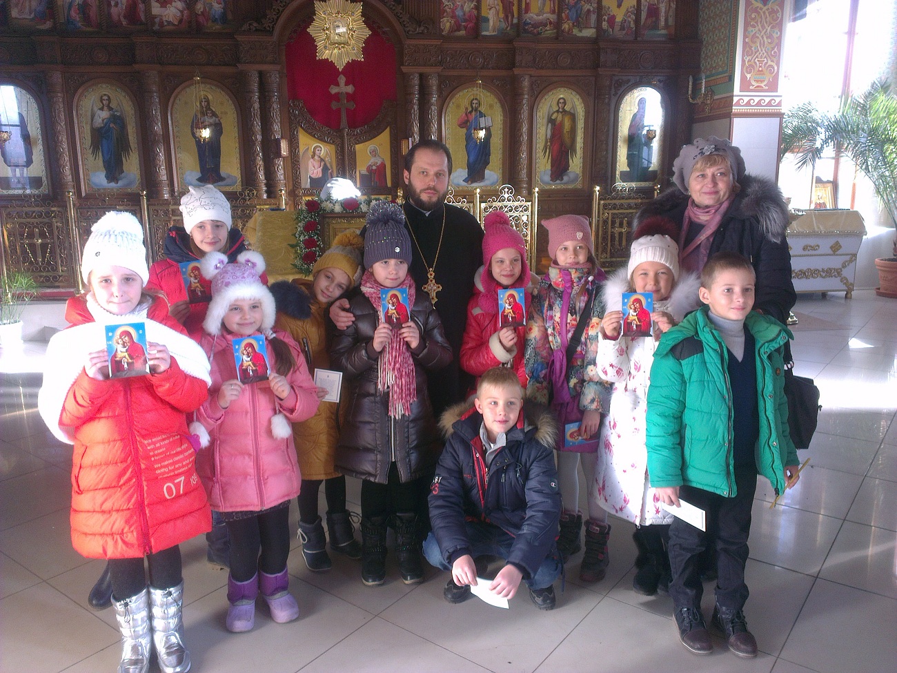 После небольшой фотосессии каждый маленький прихожанин получил от батюшки Андрея в подарок икону Божией Матери. Ребята, в свою очередь, подарили батюшке свои подарки и поблагодарили за очень интересный и полезный урок.