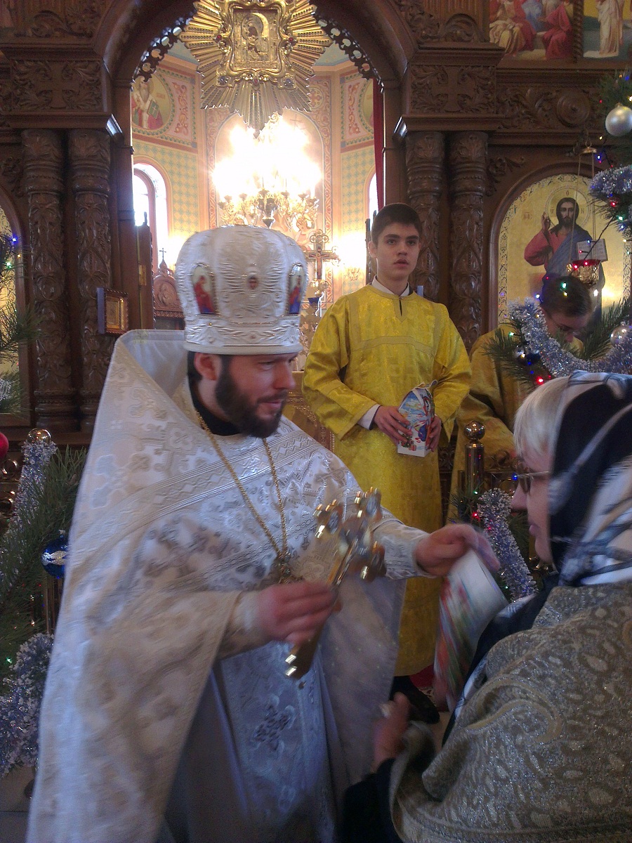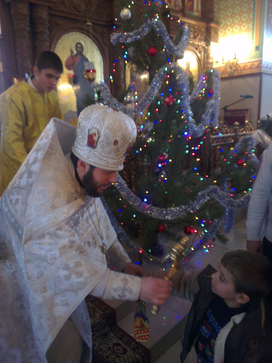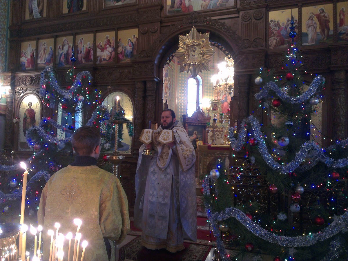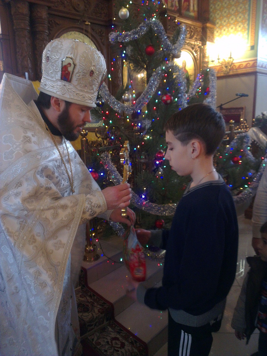 На Божественную Литургию в наш храм пришло множество людей, чтобы прославить Господа, поклониться Новорожденному Богомладенцу, причаститься Святых Христовых Тайн. Настоятель храма протоиерей Андрей Карпец поздравил всех прихожан с великим и радостным праздником. По окончании Божественной Литургии батюшка поблагодарил всех за совместную молитву и раздал прихожанам сладкие подарки.
