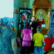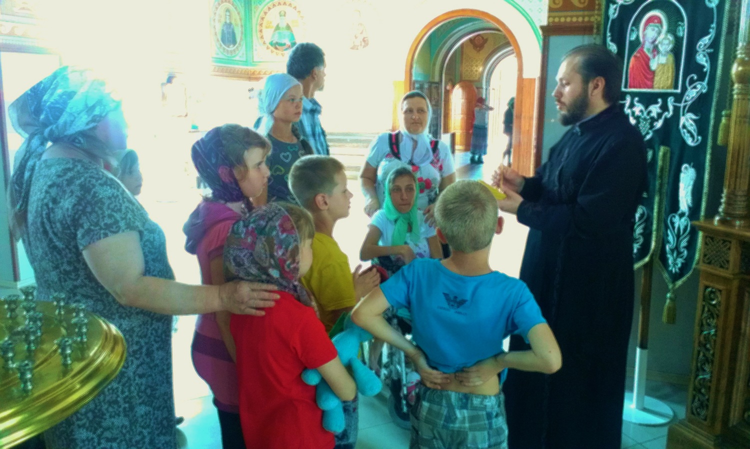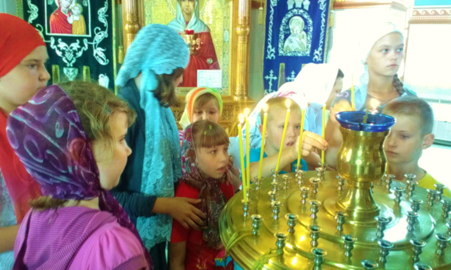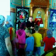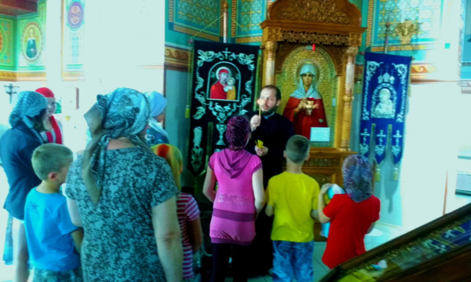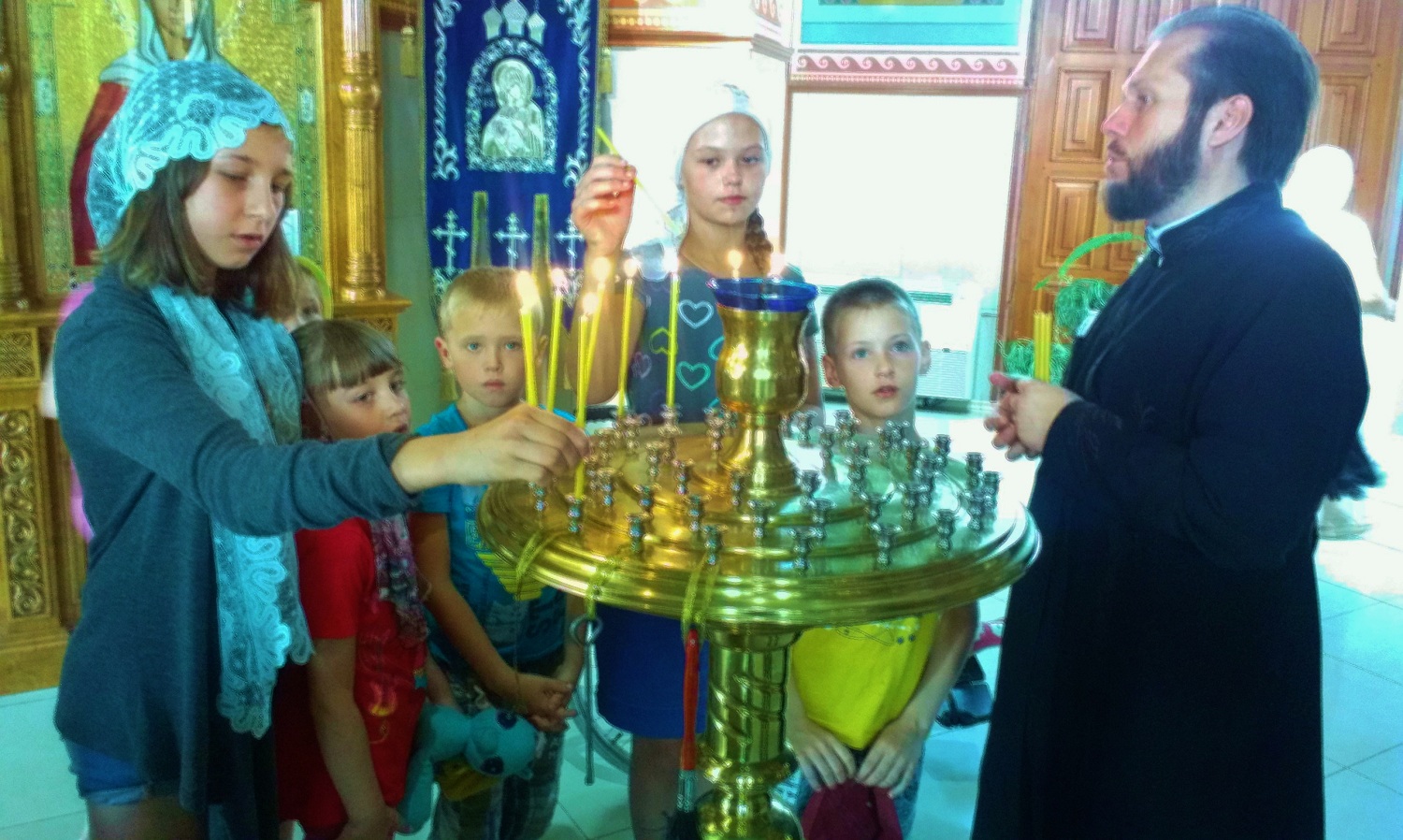 Накануне празднования дня Крещения Руси и памяти святого равноапостольного князя Владимира наш храм посетили воспитанники детского оздоровительного лагеря «Антошка», который работает на базе Авдеевского ДДЮТ. Дети совершили экскурсию по храму. Для некоторых она была ознакомительной. Настоятель храма протоиерей Андрей Карпец рассказал гостям о предназначении храма и поведении в нем, о кресте и крестном знамении, о значении церкви в жизни человека. Особое внимание он уделил рассказу о покровительнице нашего храма святой равноапостольной Марии Магдалине. На примере этой святой батюшка показал значение перемен в поступках человека к лучшему, к чему мы и должны стремиться. Отец Андрей рассказал о значении церковной свечи, показал, как правильно ее поставить на подсвечнике. Каждый ребенок с удовольствием поставил свою свечу за здравие родных и близких, а также за тех бабушек и дедушек, которые уже отошли ко Господу.