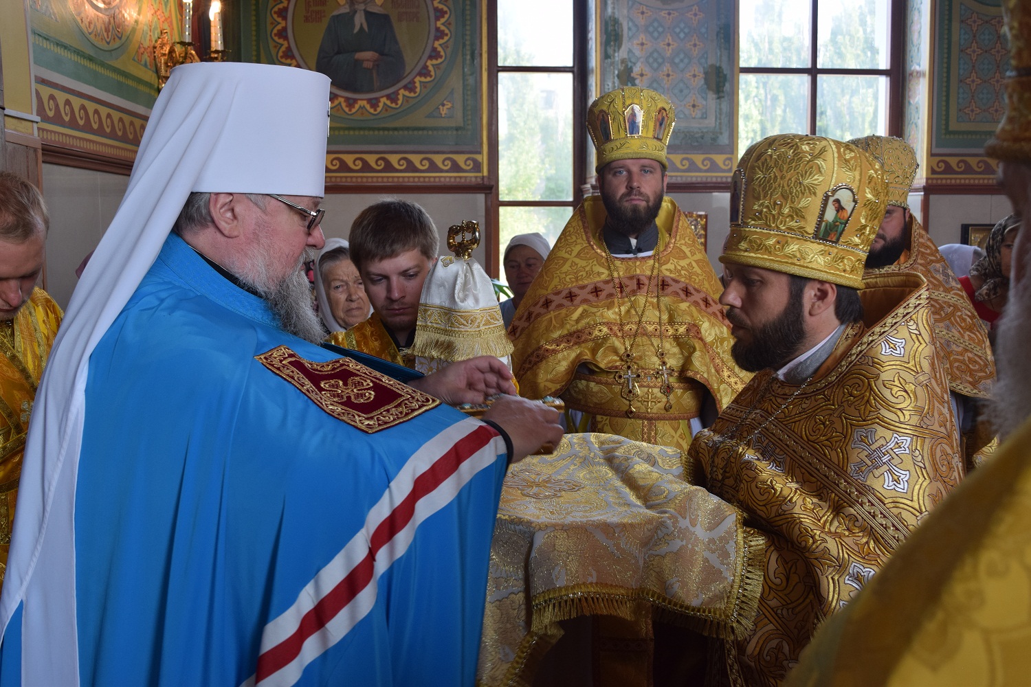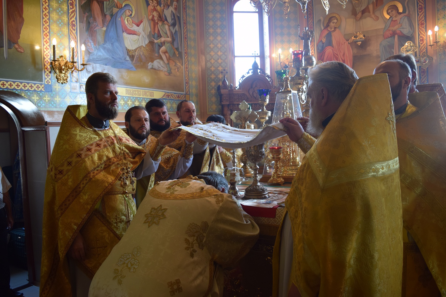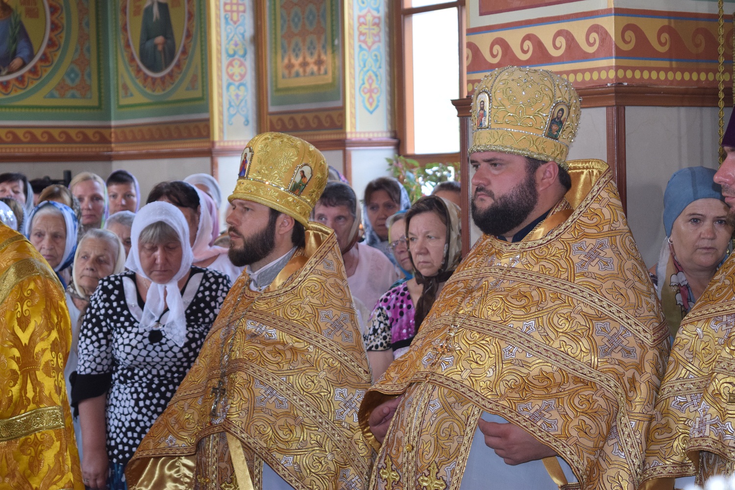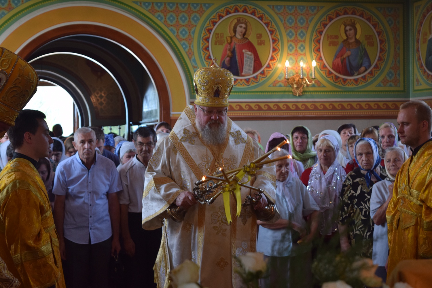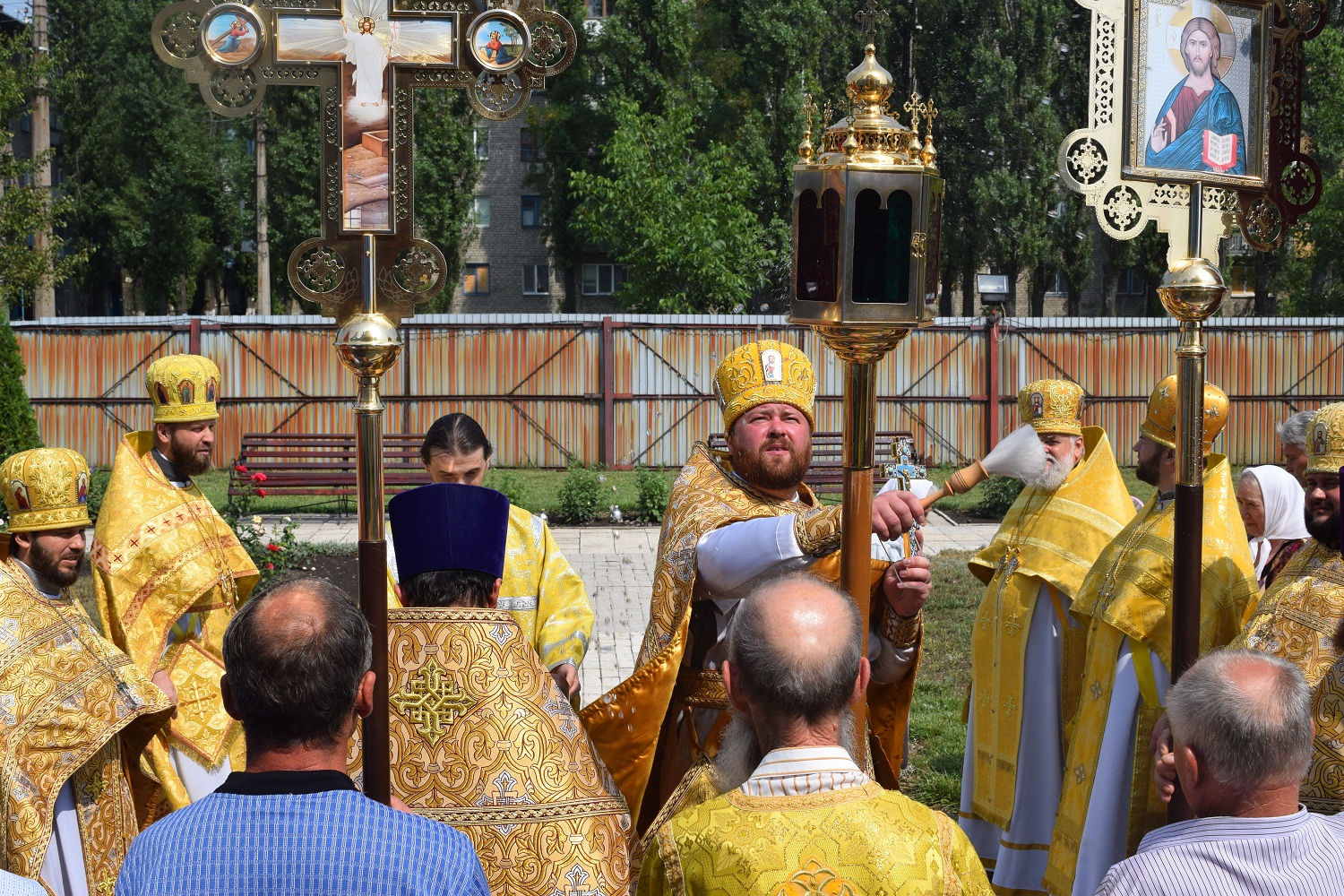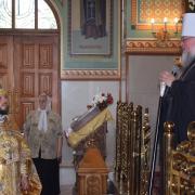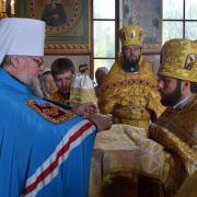 Правящий архиерей возглавил Святую Божественную Литургию в сослужении благочинного Преображенского округа г.Донецка протоиерея Петра Устименко, благочинного Красноармейского округа протоиерея Александра Кондратюка, благочинного Константиновского округа Горловской епархии протоиерея Андрея Чичиринды, настоятеля храма св.Марии Магдалины благочинного Авдеевского округа протоиерея Андрея Карпец, благочинного Новоселковского округа протоиерея Михаила и духовенства епархии.