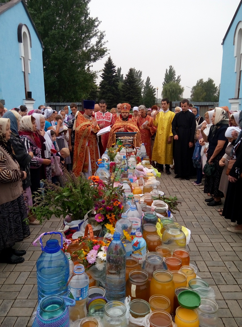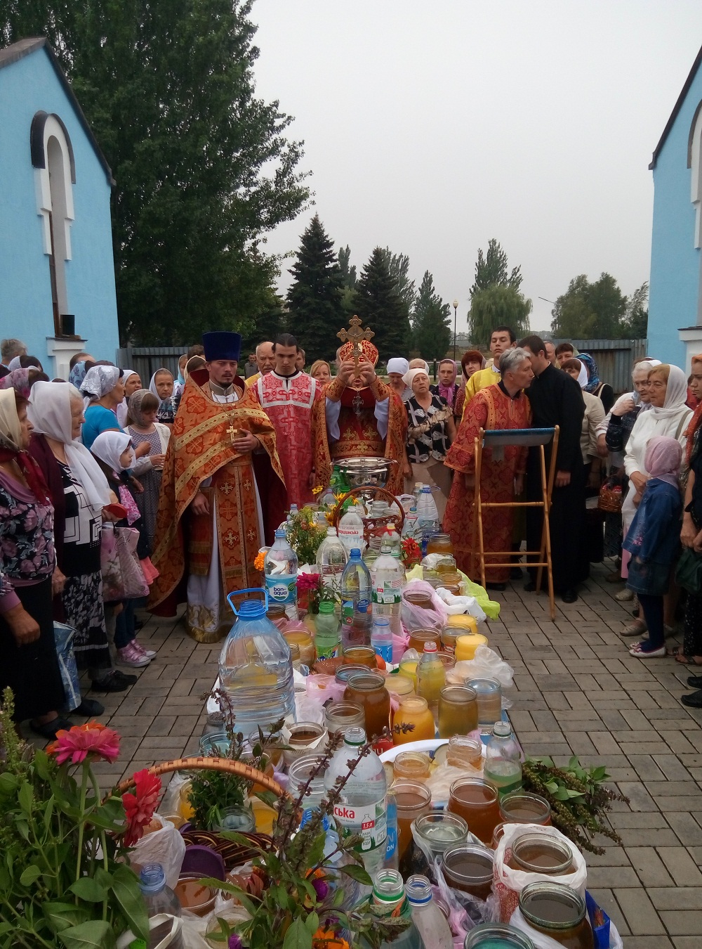 14 августа Святая Православная Церковь празднует Происхождение (изнесение) честных Древ Животворящего Креста Господня.В этот же день Церковь чтит память святых мучеников Маккавеев, ихх матери и учителя. В нашем храме была совершена Святая Божественная Литургия, после которой состоялся молебен с малым освящением воды, зелий и мёда нового сбора; поэтому сегодняшний праздник называется медовый Спасом. С этого дня начинается строгий Успенский пост, который продлится до праздника Успения Пресвятой Богородицы 28 августа.