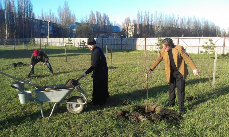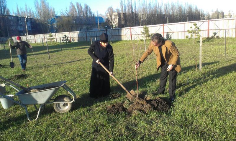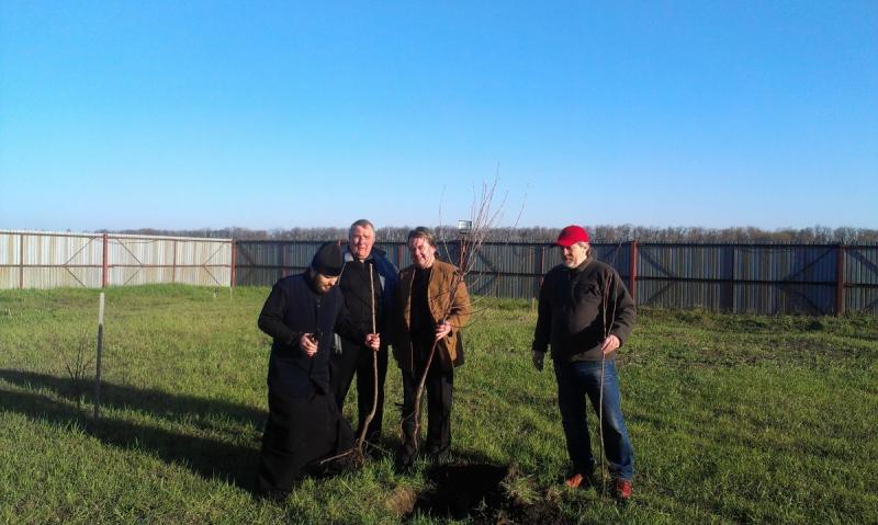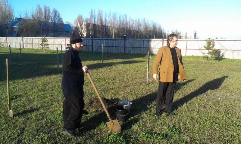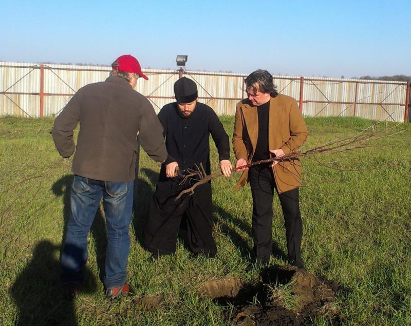 Как всегда, Вадим Яковлевич приехал не с пустыми руками - он привез 50 саженцев плодовых деревьев. Сотворив молитву, Вадим Яковлевич вместе с настоятелем храма святой равноапостольной Марии Магдалины протоиереем Андреем Карпец, высадили деревья на территории храма.