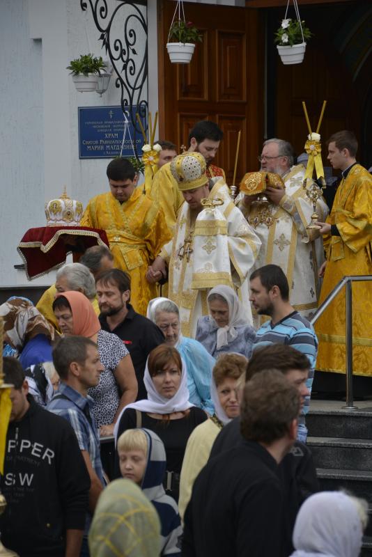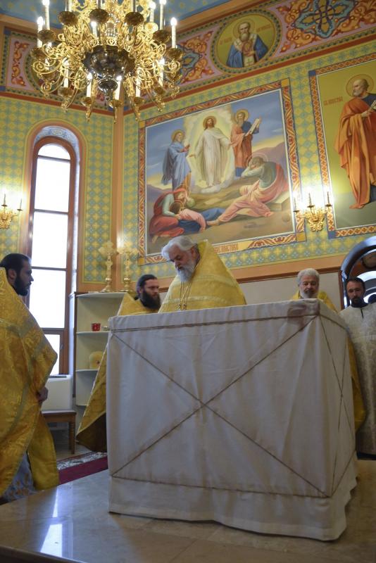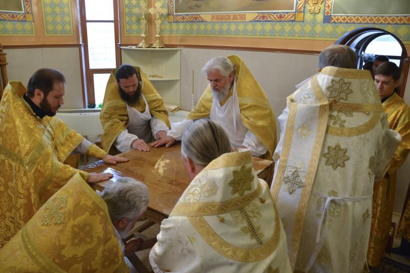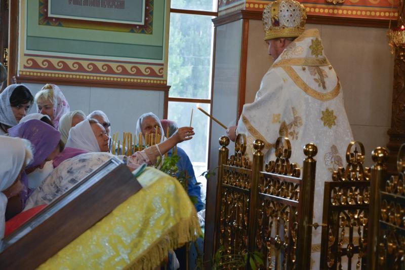 Во время богослужения состоялся чин освящения престола, а также всего храма. Престол и стены храма миропомазывались в ознаменование осенения их Благодатью Святого Духа. Вокруг храма со Святыми Мощами прошел крестный ход, который возглавил правящий Архиерей Митрополит Иларион. В этом торжественном шествии с крестами, хоругвями и иконами приняли участие все присутствующие на празднике. Священнодействия и молитвы несли глубочайший смысл и духовную наполненность.