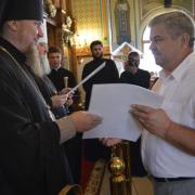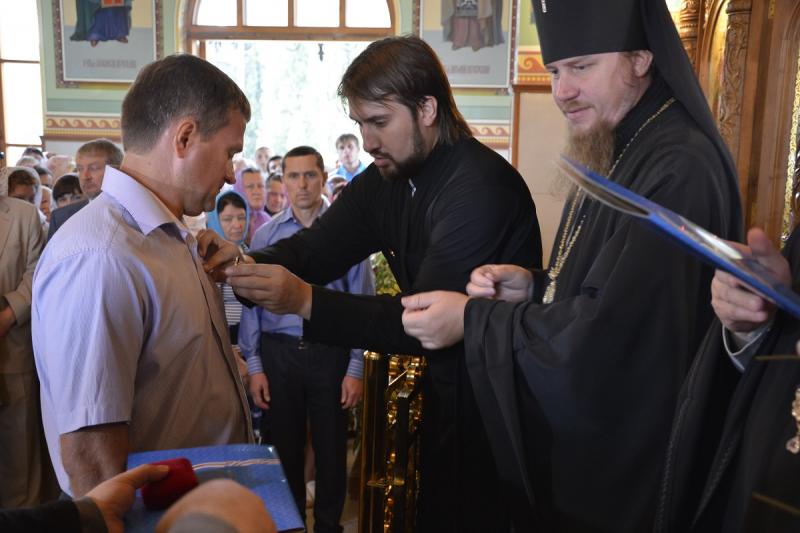 После Божественной литургии Высокопреосвященнейший Владыка Митрополит Иларион выразил особую благодарность, Его Высокопреосвященству Архиепископу Елисею, трудами которого был построен храм, настоятелю храма святой Марии Магдалины протоиерею Андрею Карпец наградив его крестом с украшениями и благодетелям, которые внесли наиболее весомый вклад и посильную помощь в благоустройстве храма, отметив их высокими церковными наградами: