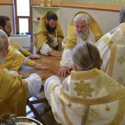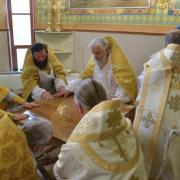 В завершении престольного праздника Владыка Митрополит преподал всем благословение, окропив святой водой, после чего состоялась трапеза, на которую были приглашены все прихожане и гости храма.